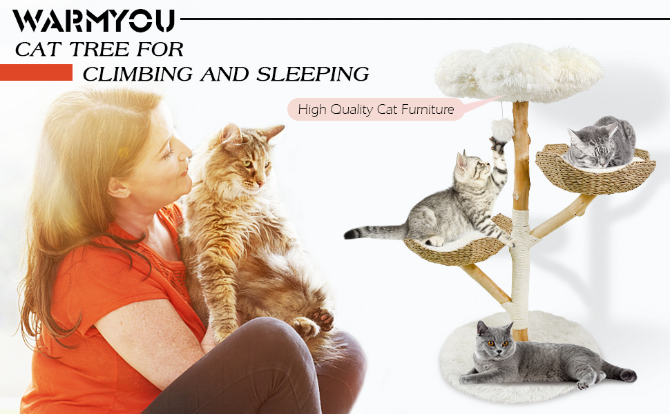 مساحة مريحة: شجرة القطط مجهزة بأعمدة السيزال ولوحة خدش سفلية من السيزال، والتي يمكن أن تلبي غرائز الخدش لدى القطط. يوفر المخمل الكهروضوئي مقاس 4 مم بيئة نوم مريحة. تتميز سجادة القطط على شكل زهرة بسمك 15 سم وعش القطط بقطر 15 بوصة بمساحة كافية للراحة والترفيه.