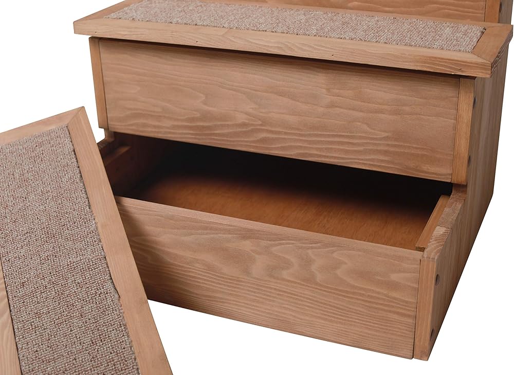 Zoovilla PTR0082212010 Yorkshire Pet Step مع مساحة تخزين، منحدر خشبي بجانب السرير مع مساحة تخزين، خشب طبيعي، 15.55 بوصة عمق × 17.50 بوصة عرض × 14.76 بوصة ارتفاع