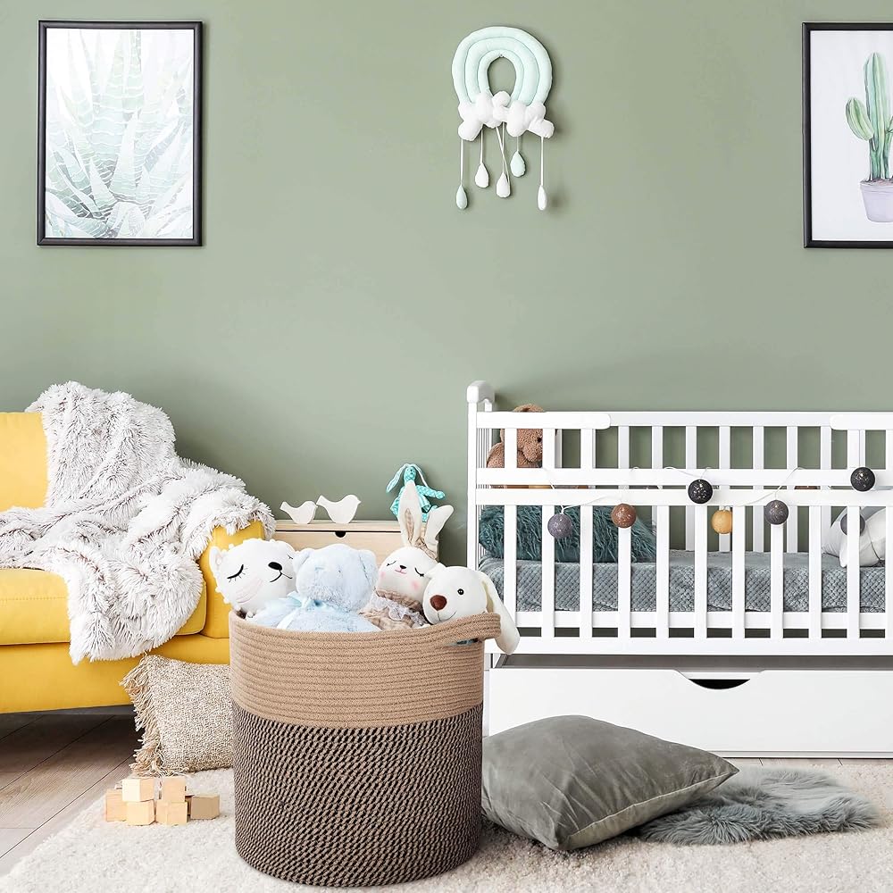 • سلال تخزين من الحبال القطنية بحجم 15 × 14.2 بوصة - لتخزين العناصر مثل البطانيات الإضافية والرميات والحيوانات المحنطة والملابس وغسيل الأطفال والمزيد. إنها توفر مساحة كبيرة للأغراض المتنوعة الأصغر أيضًا، مثل الكتب والمجلات وإكسسوارات غرف الأطفال والألعاب، للحفاظ على مساحة معيشتك نظيفة ومرتبة!