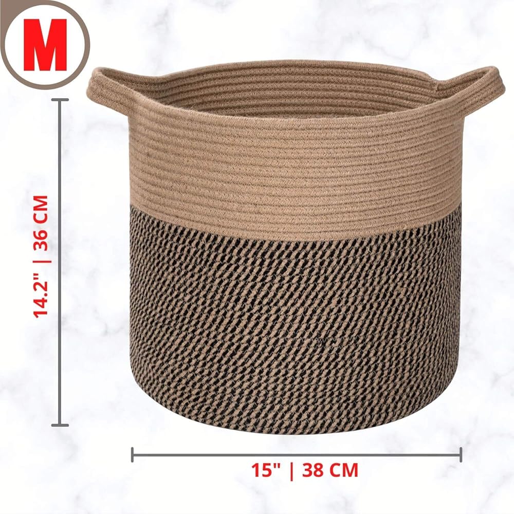 • لا توجد حواف حادة - سلال التخزين الخاصة بنا مصنوعة يدويًا من حبال قطنية فاخرة لذا فهي رائعة للاستخدام في أي مكان في منزلك. تضمن الصناعة عالية الجودة عدم وجود حواف حادة أو صلبة لخدش الأرضيات أو أصابع القدم. استخدمها براحة بال تامة في جميع أنحاء المنزل.