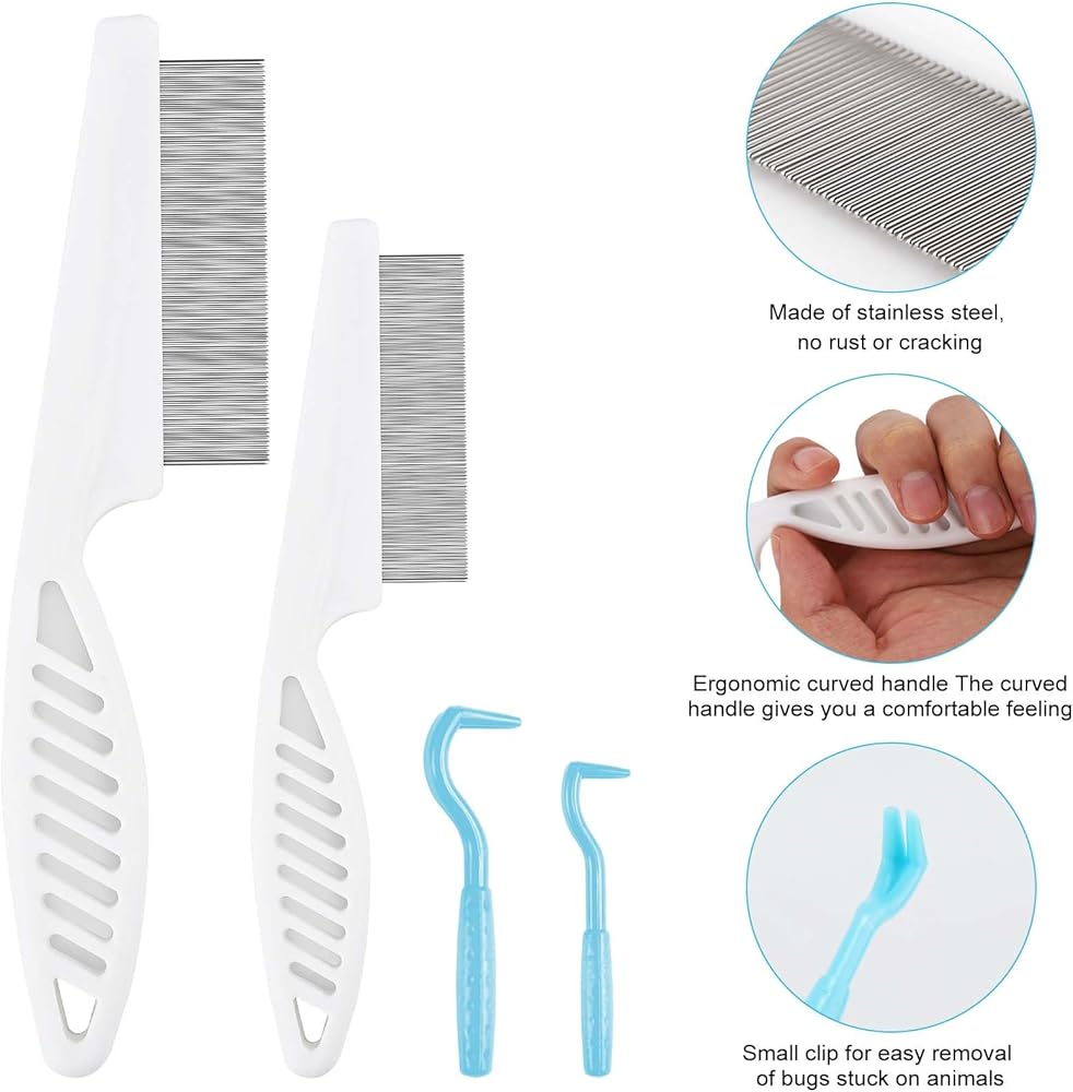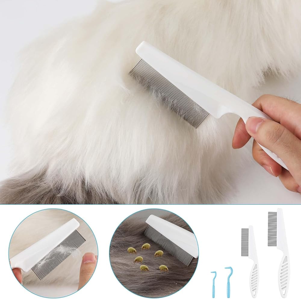 Product Material: Fine-tooth combs are made of stainless steel and plastic, and pet clamp are made of plastic, which are reliable, comfortable, long-lasting and not easy to break. The handles of pet's combs are ergonomically designed, which are lightweight and easy to hold for a long time.