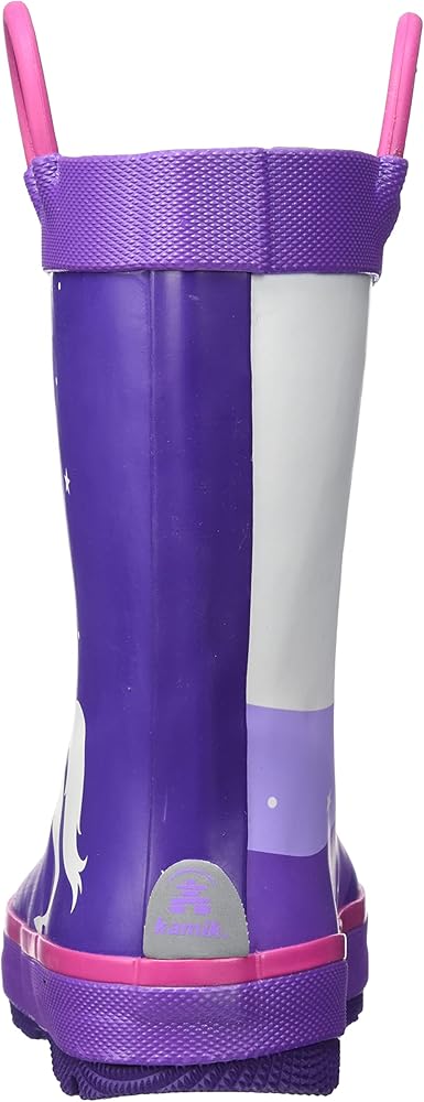 The Unicorn waterproof purple rain boots from Kamik might just give your kid magical powers. With flexible, vulcanized rubber that's PVC-free, these waterproof kids' boots are great for leaping and trotting in all kinds of conditions, year round. NiteRays reflective technology.
