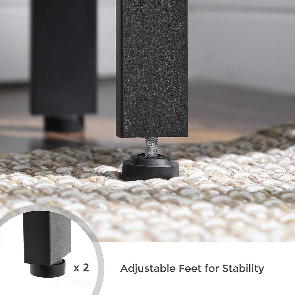 [مصمم ليدوم طويلاً]: مصنوع من لوح حبيبي عالي القوة وإطار فولاذي، وهو متين لسنوات؛ كل طبقة تحمل ما يصل إلى 5 كجم؛ 4 أقدام قابلة للتعديل تقف بثبات على الأرضية غير المستوية