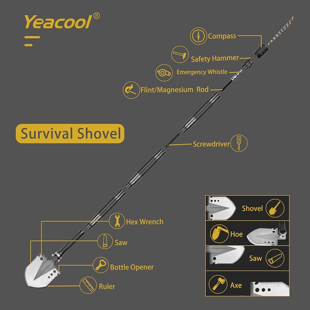 اطلب بثقة وهدية مثالية. Yeacool رضا العملاء يعني كل شيء! نحن نقوم بإصلاح أي مشكلة بسرعة ونقدم أفضل حل لعملائنا القيمين بطريقة مهذبة!! ببساطة اتصل بنا عبر رسالة الأمازون عند الضرورة، استمتع بتجربة تسوق خالية من المتاعب معنا!! !هدية فريدة من نوعها للأشخاص الذين يحبون الأنشطة الخارجية، ضع ابتسامة كبيرة على وجههم مع هذا المجرفة المذهلة متعددة الوظائف!