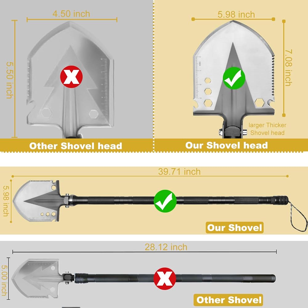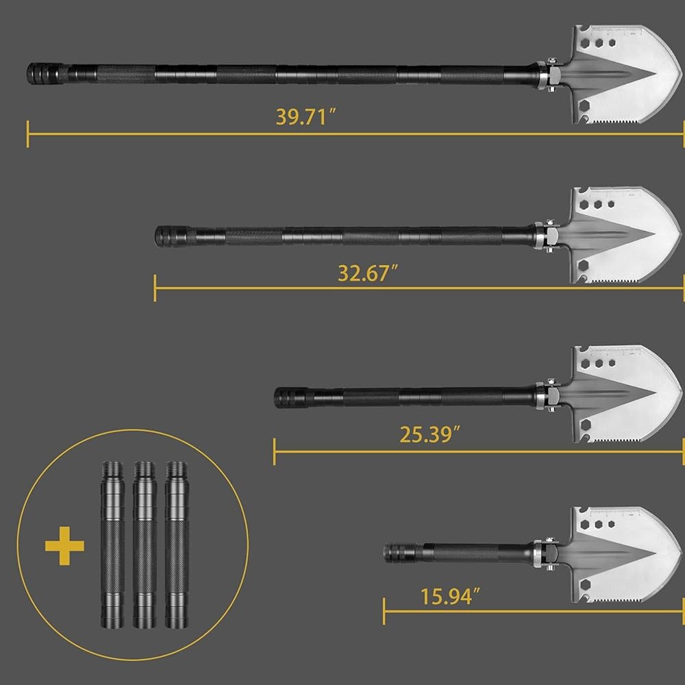 أداة متعددة الاستخدامات جاهزة لأي شيء! إنها ليست مجرد مجرفة في الهواء الطلق يمكن استخدامها للتخييم أو الطرق الوعرة أو البقاء على قيد الحياة، ولكن أيضًا يمكن استخدامها في المشاريع المنزلية مثل البستنة أو الاستعداد للطقس أو أنواع مختلفة من حالات الطوارئ. كما يقول المقول، "من الأفضل الحصول عليها، ولا تحتاج إليها، من الحاجة إليها وليس الحصول عليها!"