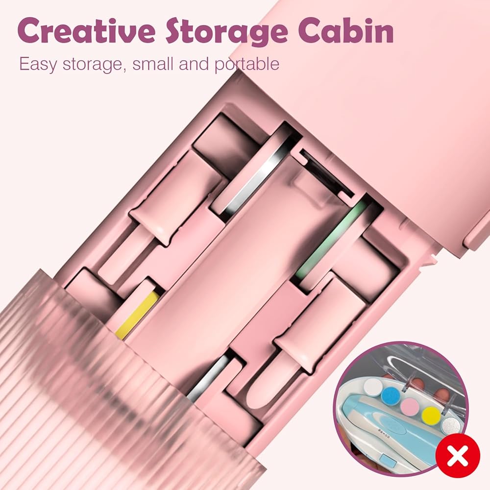❤️[مجموعة العناية بالأظافر الكل في واحد] ماكينة تشذيب الأظافر هذه هي تصميم الكل في واحد. تختلف مجموعة تشذيب أظافر الأطفال هذه عن غيرها من مقصات أظافر الأطفال، حيث تنظم جميع رؤوس الطحن في الجسم دون صندوق تخزين إضافي. مريحة للغاية للتخزين والحمل في أي مكان.