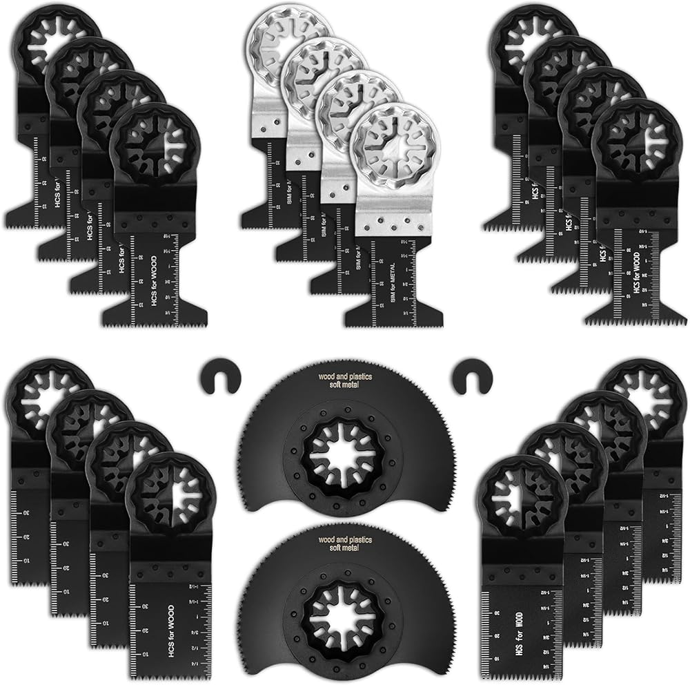 شفرات متذبذبة من ستارلوك، 24 قطعة من شفرات المنشار متعددة الادوات، شفرة خشبية ستارلوك العالمية، شفرة معدنية سريعة الفك متعددة الادوات متوافقة مع بوش وفين وماكيتا