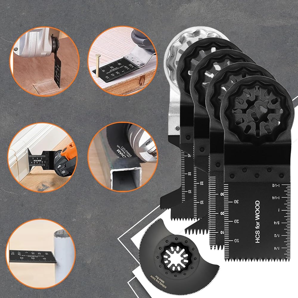 ❥ قطع دقيق مع شفرات أداة متذبذبة: مصممة بدقة تضمن شفرات المنشار المتذبذبة هذه قطعًا دقيقًا في مجموعة متنوعة من المواد. يوفر تصميم شفرة الأداة المتذبذبة، جنبًا إلى جنب مع علامات الطول بالانش والسنتيمتر، قصًا دقيقًا للعمل المعقد. هذه الشفرات مثالية للمهام التي تتطلب دقة عالية، مثل الأعمال الخشبية التفصيلية أو الأعمال المعدنية المعقدة.
