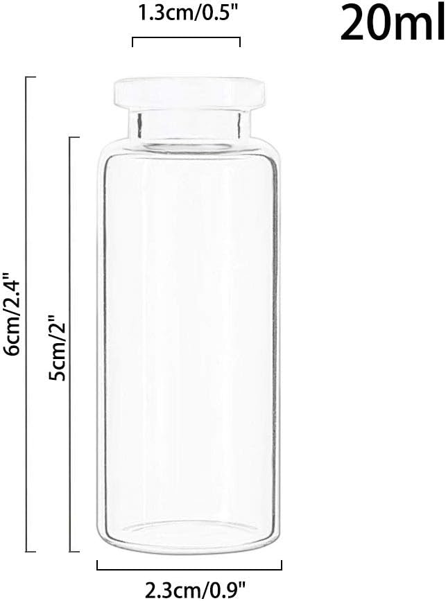الحجم: يبلغ ارتفاع الزجاجات ذات الفلين - 6 سم/2.4 انش، القطر - 2.3 سم/0.9 انش، بسعة 20 مل