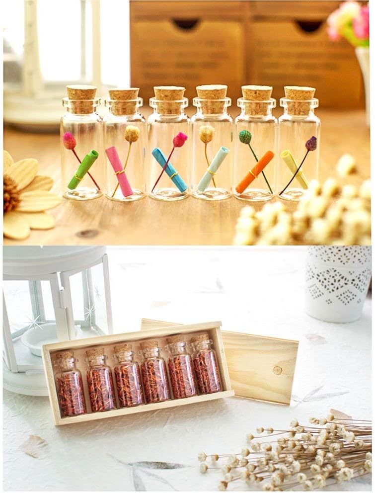 المواد: زجاجات زجاجية صغيرة مصنوعة من زجاج عالي الجودة، بدون فقاعات هواء، شفافية عالية. الفلين ناعم، وليس من السهل أن يسقط بقايا.