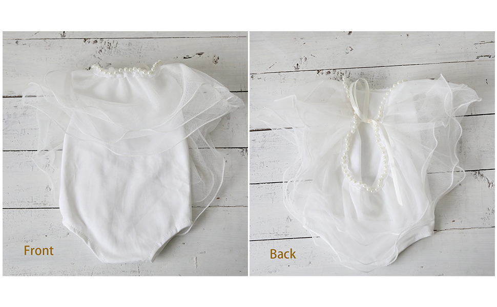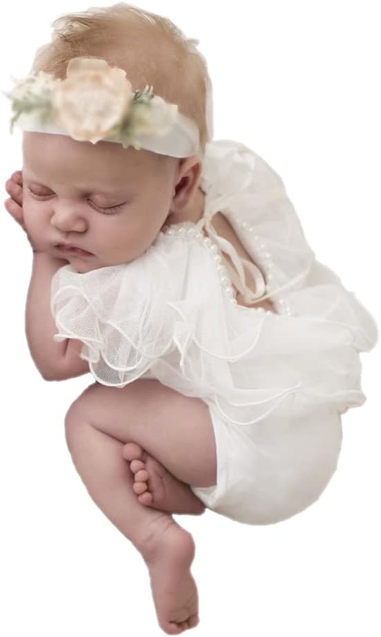 ملابس تصوير رائعة للفتيات حديثي الولادة بظهر على شكل حرف V، مع تول ناعم مع لؤلؤ عاجي ونسيج دانتيل مطاطي بطبقتين، هذا الزي الفريد سيجلب اللون والتفاصيل الجميلة إلى صورتك.
