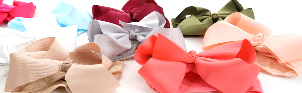 المواد: أشرطة نايلون وشريط من الحرير المضلع؛ مقاس الأقواس: حوالي 5.5-6 انش طول.