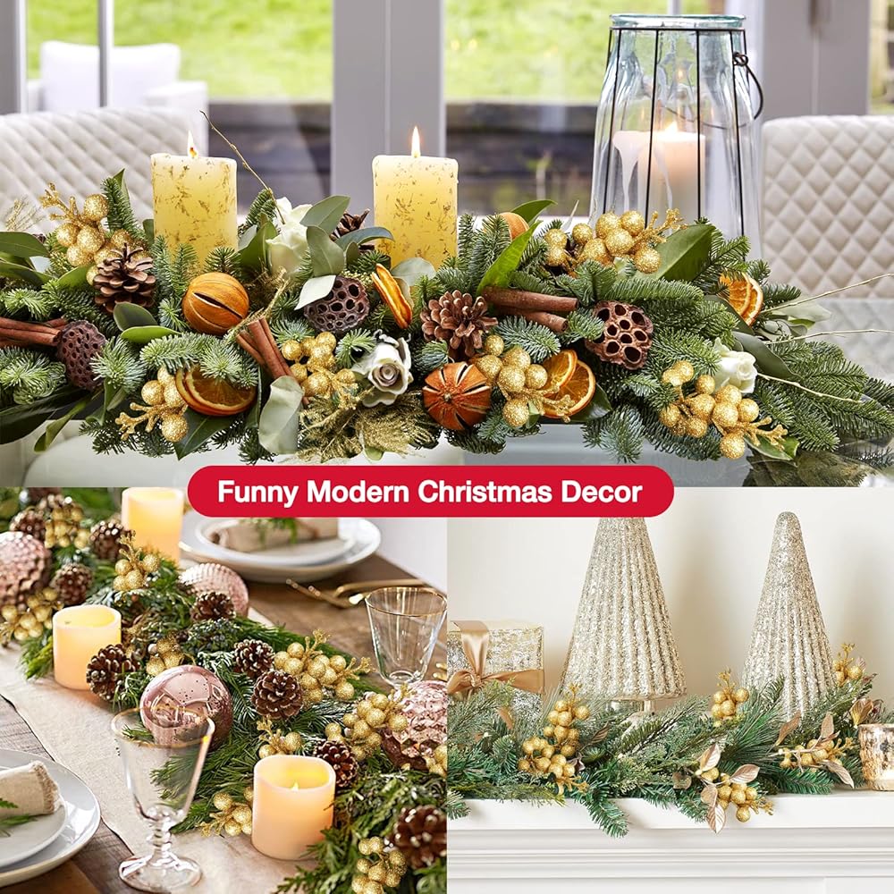 زينة عيد الميلاد: توت عيد الميلاد هذا متألق ويتناسب مع أجواء عيد الميلاد المبهجة. أو يمكن استخدامها كديكور منزلي يومي، أو عطلة، أو حفلة، أو زينة زفاف شتوية.