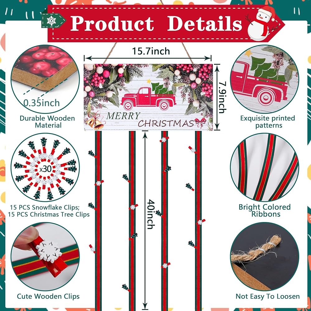محتويات العبوة: سوف تحصل على قطعة واحدة من حامل بطاقات الكريسماس مع 4 أشرطة و15 قطعة من مشابك صور ندفة الثلج و15 قطعة من مشابك شجرة الكريسماس