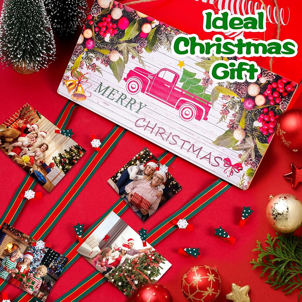 حامل صور الكريسماس عالي الجودة للتعليق على الحائط: مصنوع من خشب عالي الجودة للاستخدام طويل الأمد سنوات بعد سنوات، قوي وليس من السهل كسره بحيث يمكن أن يخدمك لفترة طويلة؛ ليس من السهل أن يبهت إطار الصورة أو يتلف؛ الشريط قوي بما يكفي لتحمل العديد من الصور، وبالتالي لا داعي للقلق بشأن السقوط؛ ويمكن تغيير مشابك الصور حسب الرغبة لصنع ديكورات شخصية خاصة بك.