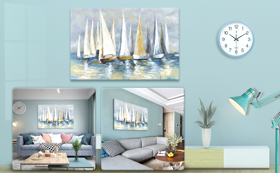 *صور سهلة التركيب لتزيين جدار غرفة المعيشة: حواف اللوحة مطلية، كل لوحة فنية جدارية تحتوي على خطافين معدنيين أسودين، تم تركيبهما على الشريط الخشبي الخلفي لسهولة التعليق.