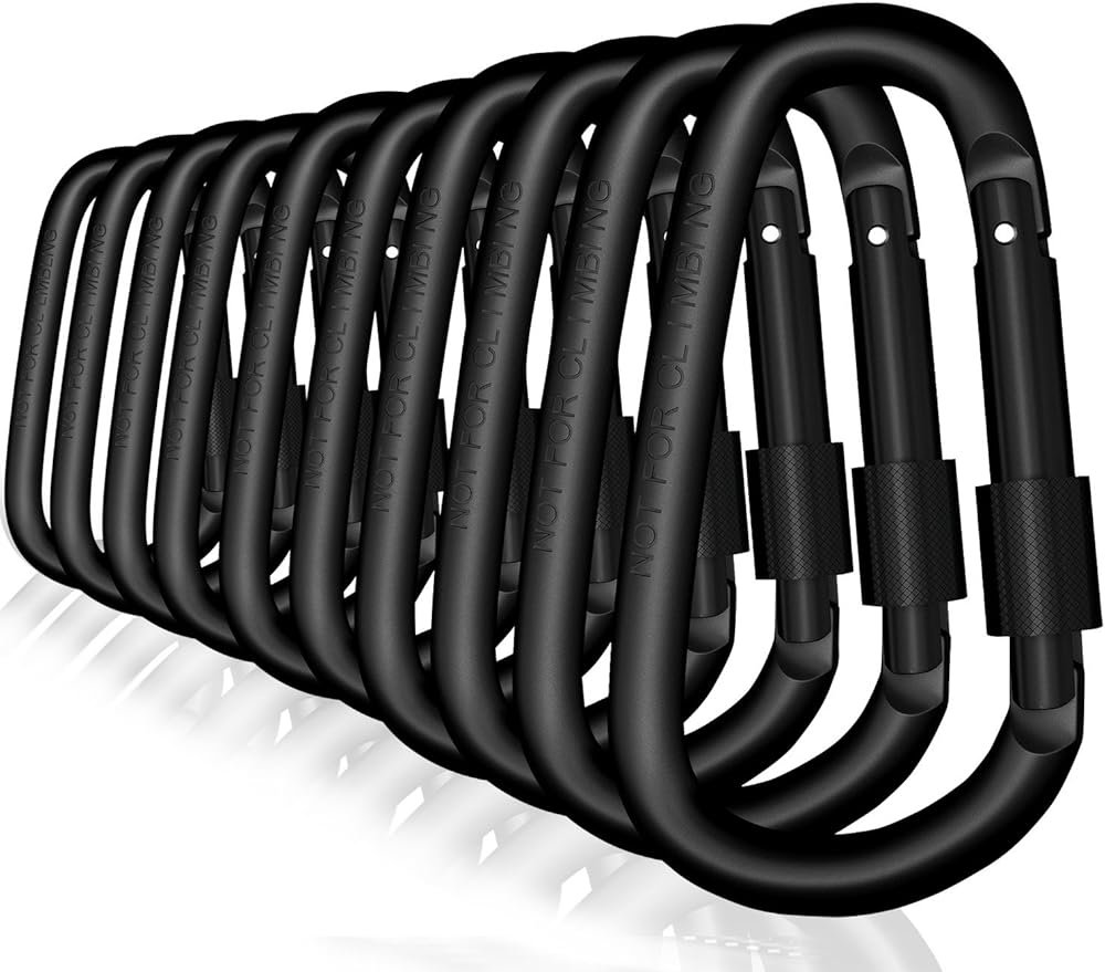 10 حزمة من مشبك حلقة تسلق من CandyHome ، ألومنيوم حلقة قفل حلقة حلقة حلقة حلقة حلقة حلقة معدنية حلقة معدنية على شكل حرف D للتخييم والمشي لمسافات طويلة والصيد - أسود