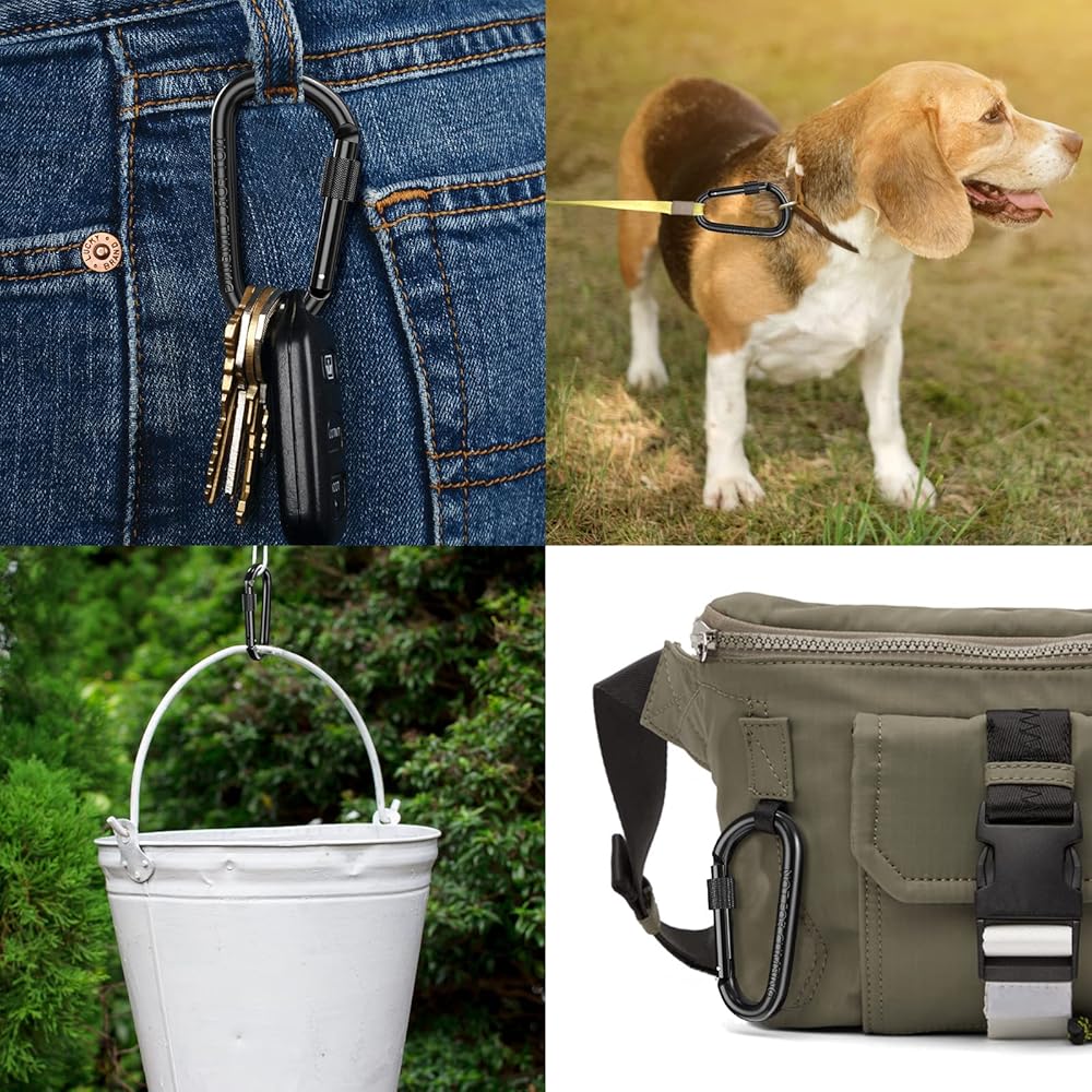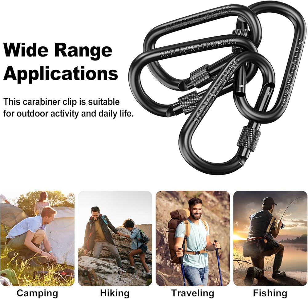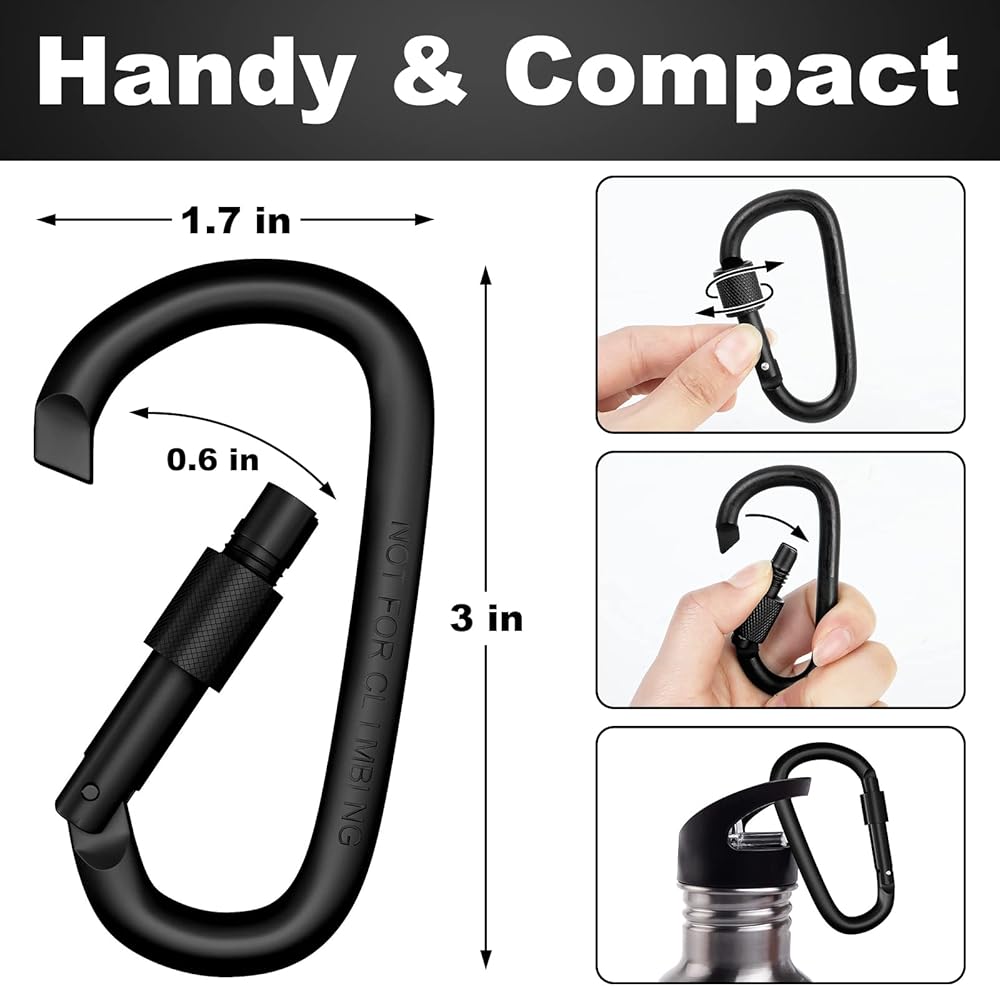 • استخدامات واسعة النطاق - مشبك حلقة التثبيت هذا مناسب للأنشطة الخارجية والتخييم وصيد الأسماك والتنزه والسفر وما إلى ذلك. نظام القفل سيبقيك آمناً. كما يمكن استخدامها للحياة اليومية، أو تعليقها على حقيبة الظهر أو حقيبة اليد أو استخدامها كخطاف سلسلة مفاتيح. حلقة التثبيت المصنوعة من الألومنيوم هذه مثالية للحفاظ على مفاتيحك وحبال التعليق والمفاتيح وغيرها من الأغراض، ويمكن استخدامها كمقبض أو علاقة، والعديد من الاستخدامات في المنزل وخارجه. حرر يديك!