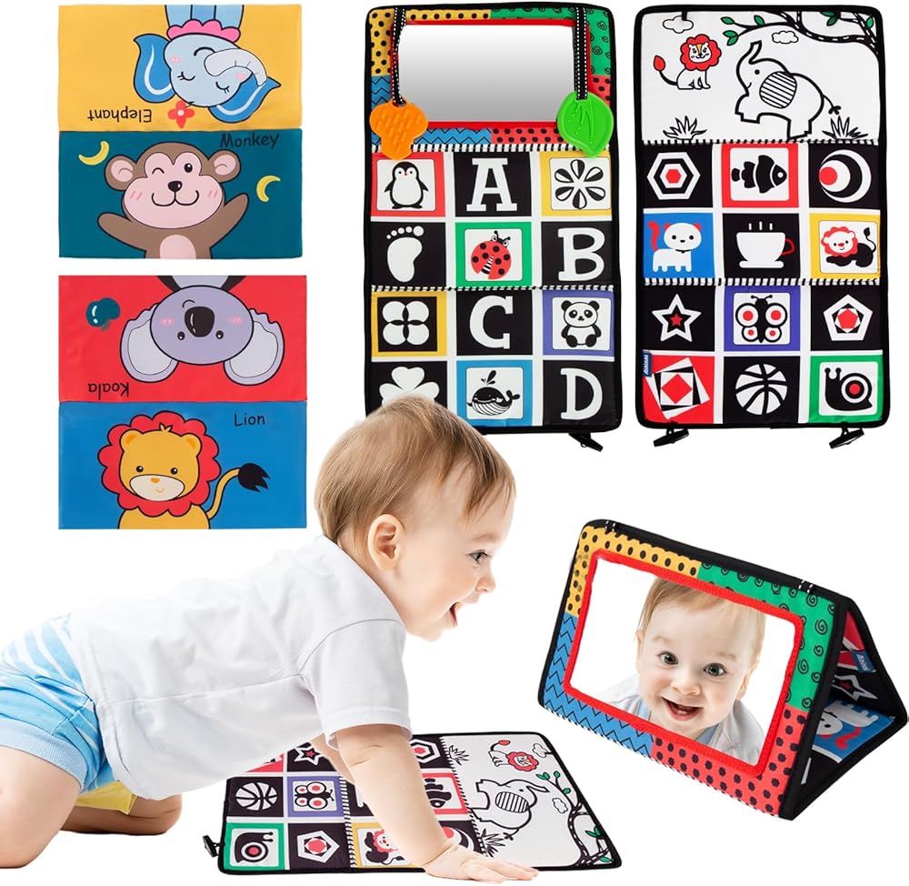 تومي تايم، ألعاب مرآة الطفل، نشاط عالي التباين، ألعاب نمو دماغ مونتيسوري لحديثي الولادة مع كتب مجعدة حسية وعضاضات للرضع من عمر 0-3-4-6-12 شهرًا، هدية سفر للأولاد والبنات