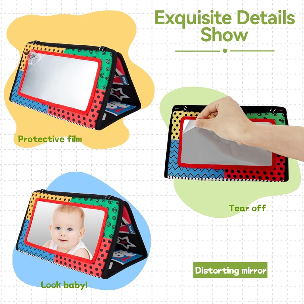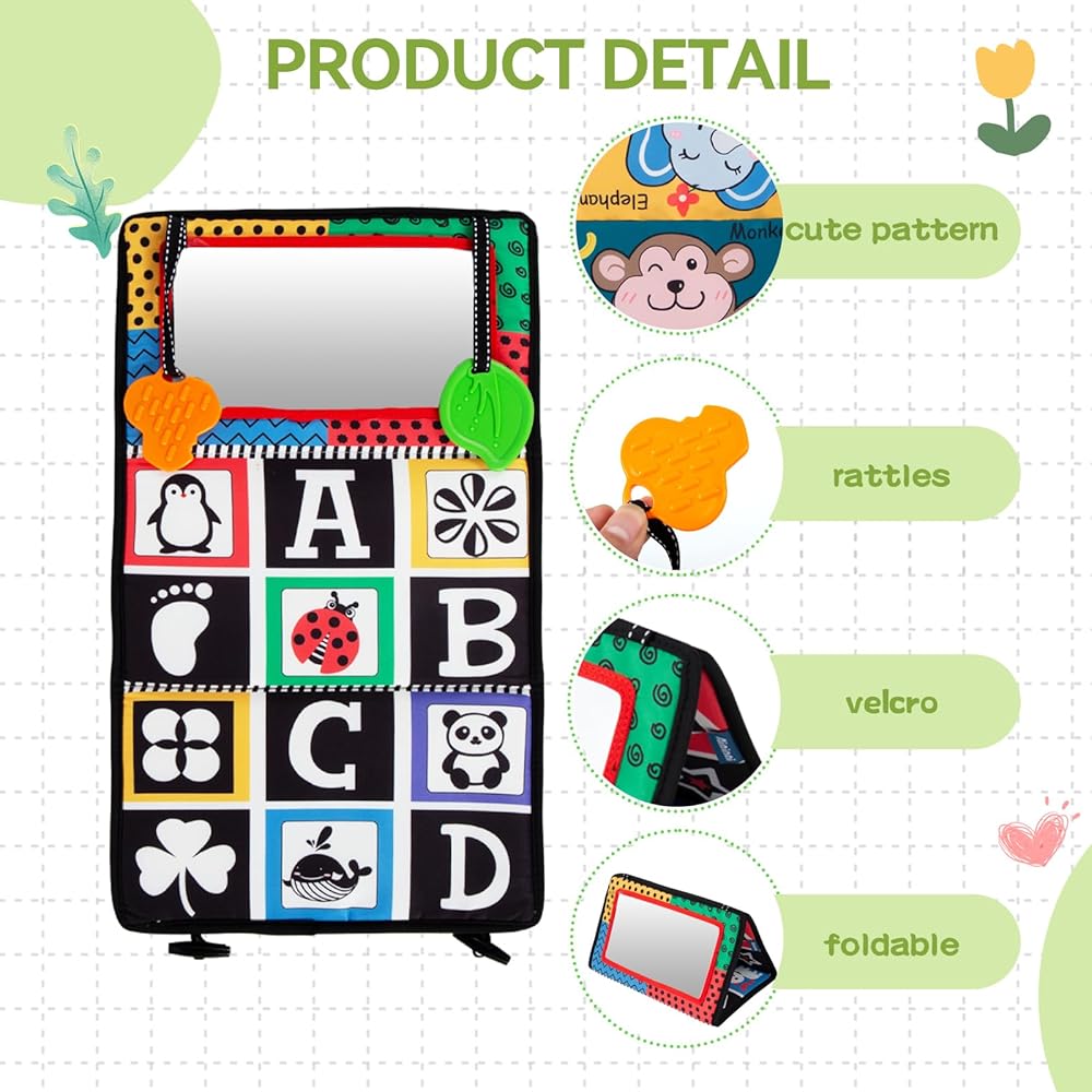 ألعاب وقت الاستلقاء على البطن: تتضمن ألعاب المرآة الأرضية 3 في 1 الخاصة بنا مرآة آمنة للأطفال مع كتاب مجعد للأنشطة ثلاثية الأبعاد وعضاضة، وجميع العناصر المحفزة اللازمة في نمو الدماغ المبكر لحديثي الولادة. إنها حقًا ألعاب حسية مثالية للطفل 0 3 6 9 12 شهرا.