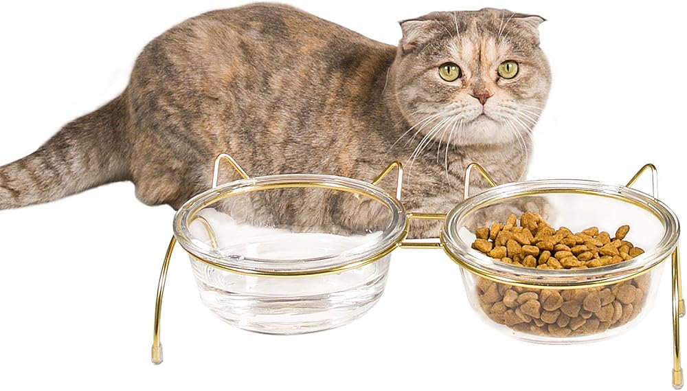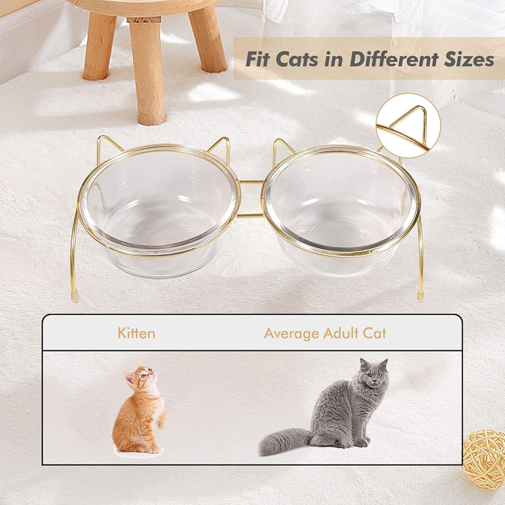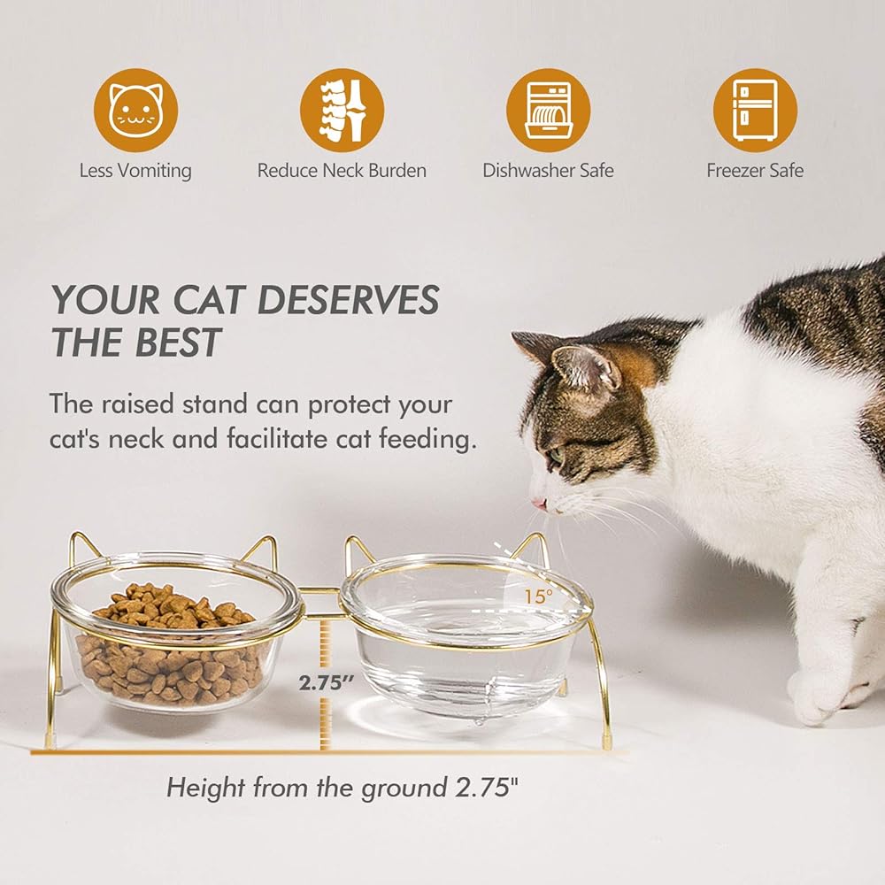• 【Convenient Detachable Design】: Qucey Raised Cat Glass Bowls feature a detachable design for effortless cleaning. Simply remove the glass bowls from the sturdy metal stand and place them directly into the dishwasher, saving you time and effort. The metal bowl stand itself is easy to wipe clean, completing the hassle-free maintenance.