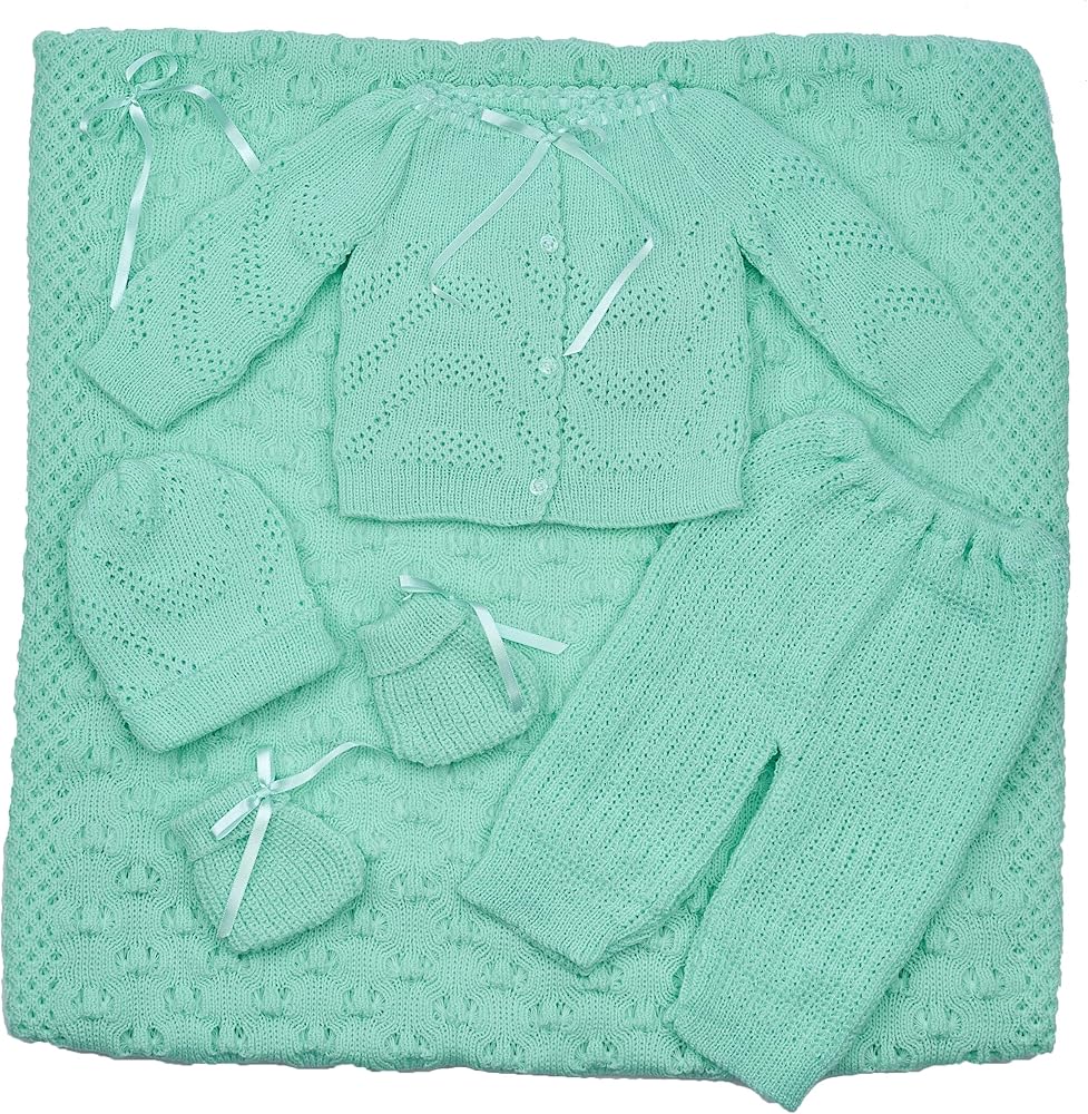 ★Set includes: 1 Blanket, 1 sweater, 1 matching pants, 1 pair of booties & 1 cap.