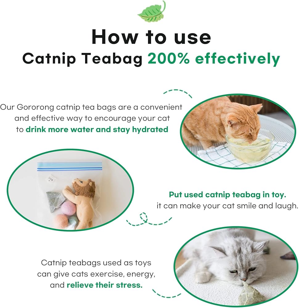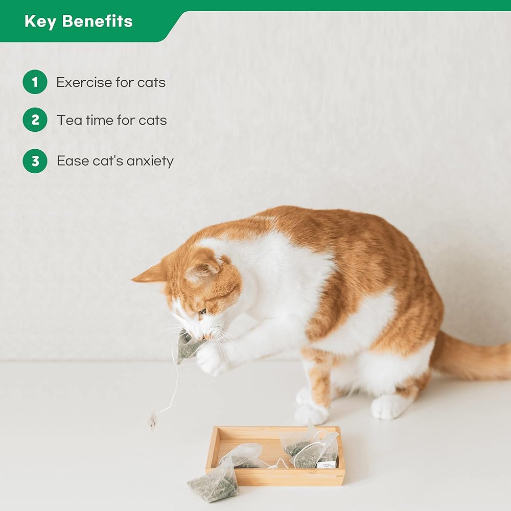 نعناع بري نقي 100% مملوء في كيس شاي! إنها مجرد كيس شاي ولكن الفرق الوحيد بالنسبة للقطط. تحتاج القطط إلى ما بين 3.5-4.5 اونصة من الماء لكل 5 باوند من وزن الجسم يوميًا! ولكن من الصعب حقًا إجبار قطة على شرب الماء.