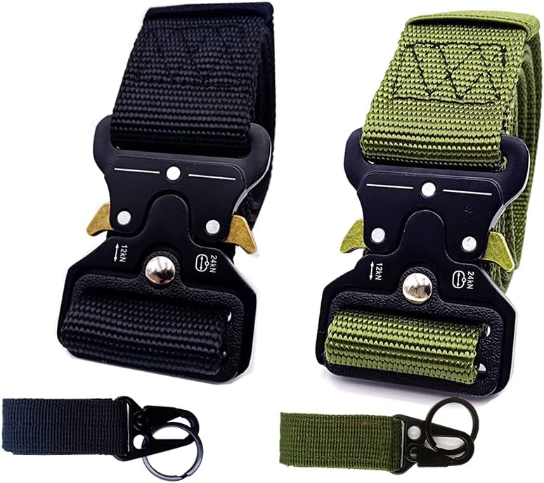 2 حزمة من الحزام التكتيكي، حزام متعدد الاستخدامات على الطراز العسكري، أحزمة قابلة للتعديل، حزام من النايلون مع حزام عالي التحمل بطول 49 بوصة يناسب الرجال والنساء هدية مع مشبكين للعتاد