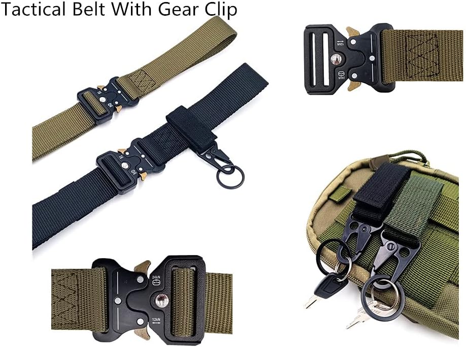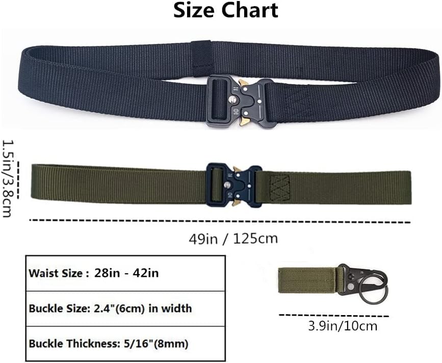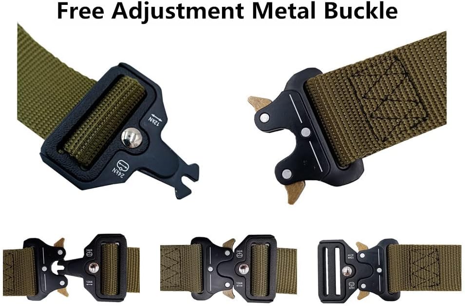 【مقاس الحزام التكتيكي】: الطول: 49 بوصة (125 سم)، العرض: 1.5 بوصة (3.8 سم)، يناسب الخصر 28 بوصة ~ 42 بوصة. حجم الإبزيم: 2.4 بوصة (6 سم) عرضًا و5/16 بوصة (8 مم) سمكًا. لا يمكن للإبزيم أن يمر عبر حلقات البنطلون العادية، يرجى خلع الإبزيم قبل المرور به. يأتي مع 2 مشبك تروس