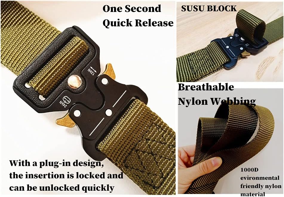 【حزام نايلون عالي الجودة】: حزام نايلون عالي الجودة - مصنوع من مادة النايلون الصديقة للبيئة 1000 D، ناعم ومريح للاستخدام اليومي. حزام منسوج متين وجيد التهوية للأنشطة التكتيكية؛ تعديل سهل.