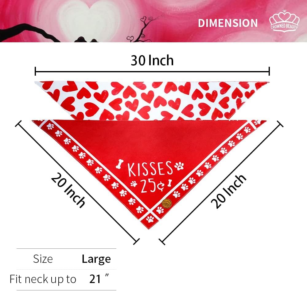 توج بيوتي عيد الحب الكلب باندانا كبيرة 2 حزمة، القبلات قابل للتعديل مثلث عطلة منقوشة عكسها الأوشحة لمتوسطة كبيرة اضافية كبيرة الكلاب الحيوانات الأليفة DB15