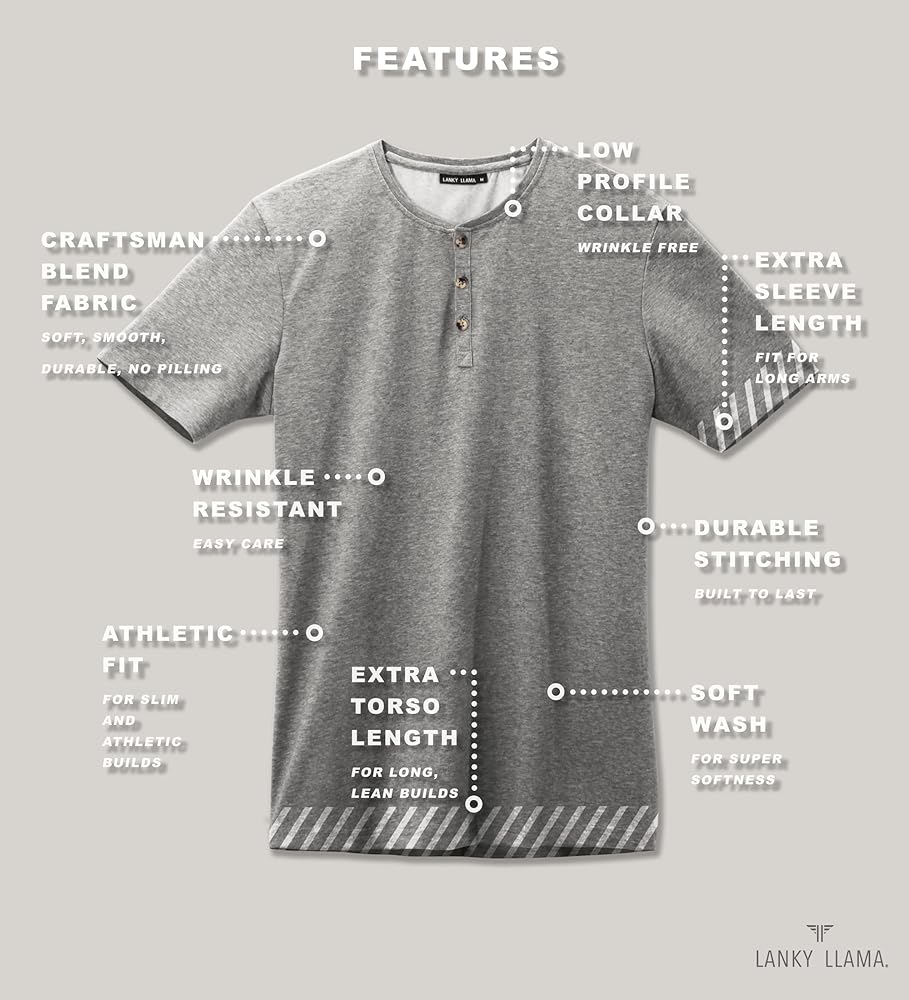 Based in Austin, Texas, we launched Lanky Llama with a simple goal: let's create high quality apparel that actually fits long, lean guys like us.