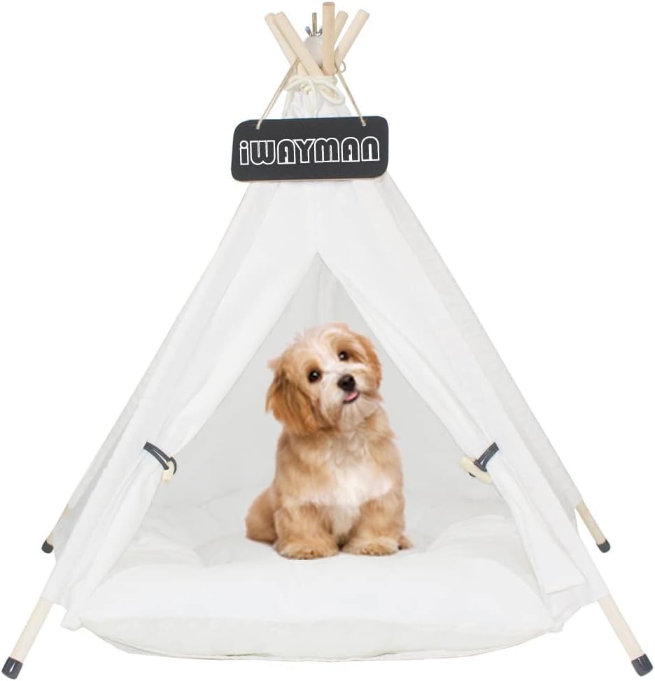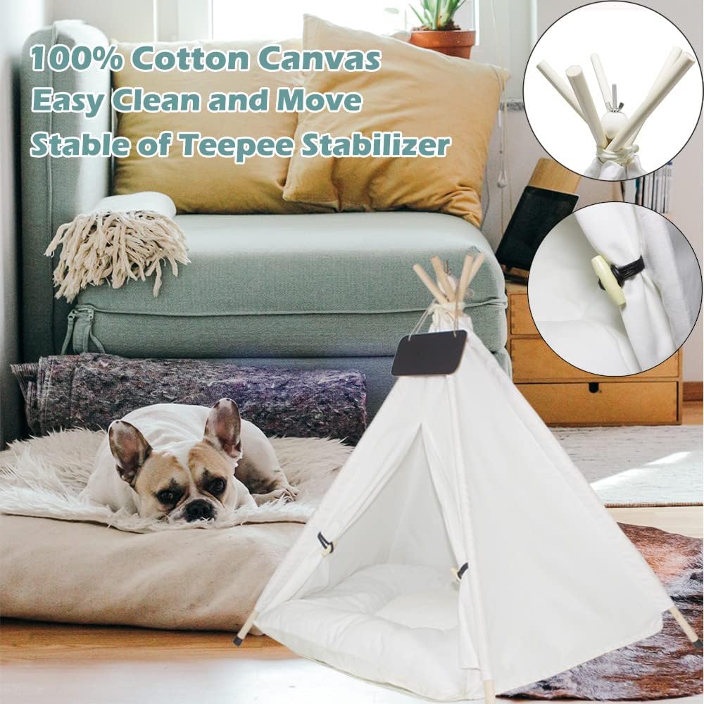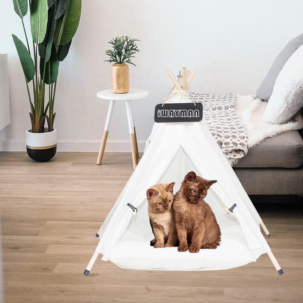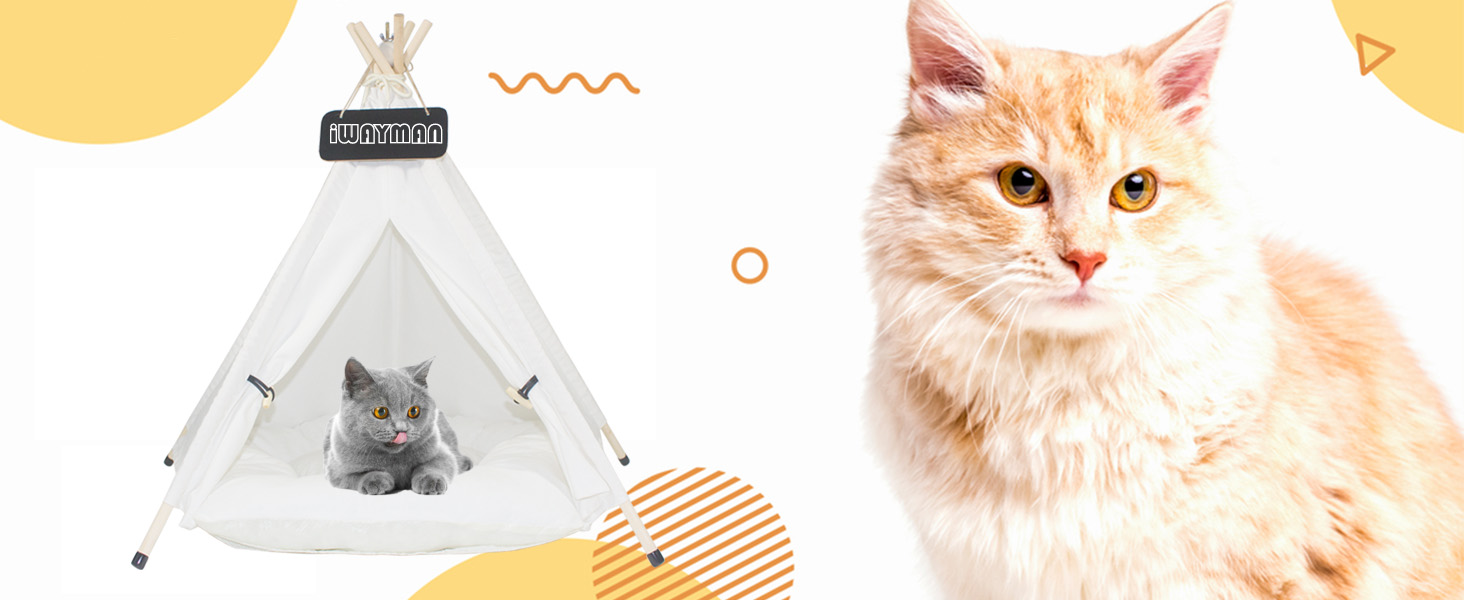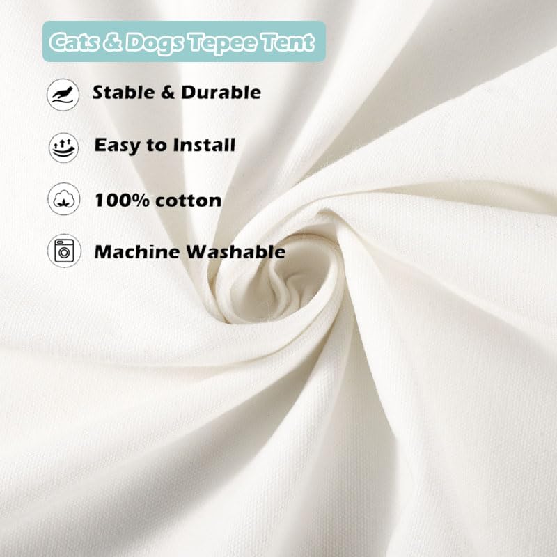 🐱Quality Material: The cute pet tent is made of high quality 100% cotton canvas and strong pine poles. Equipped with tent stabilizer pole fixed device, so that the tent is not easy to collapse. Breathable, washable, sturdy and smooth.