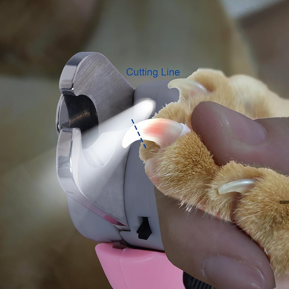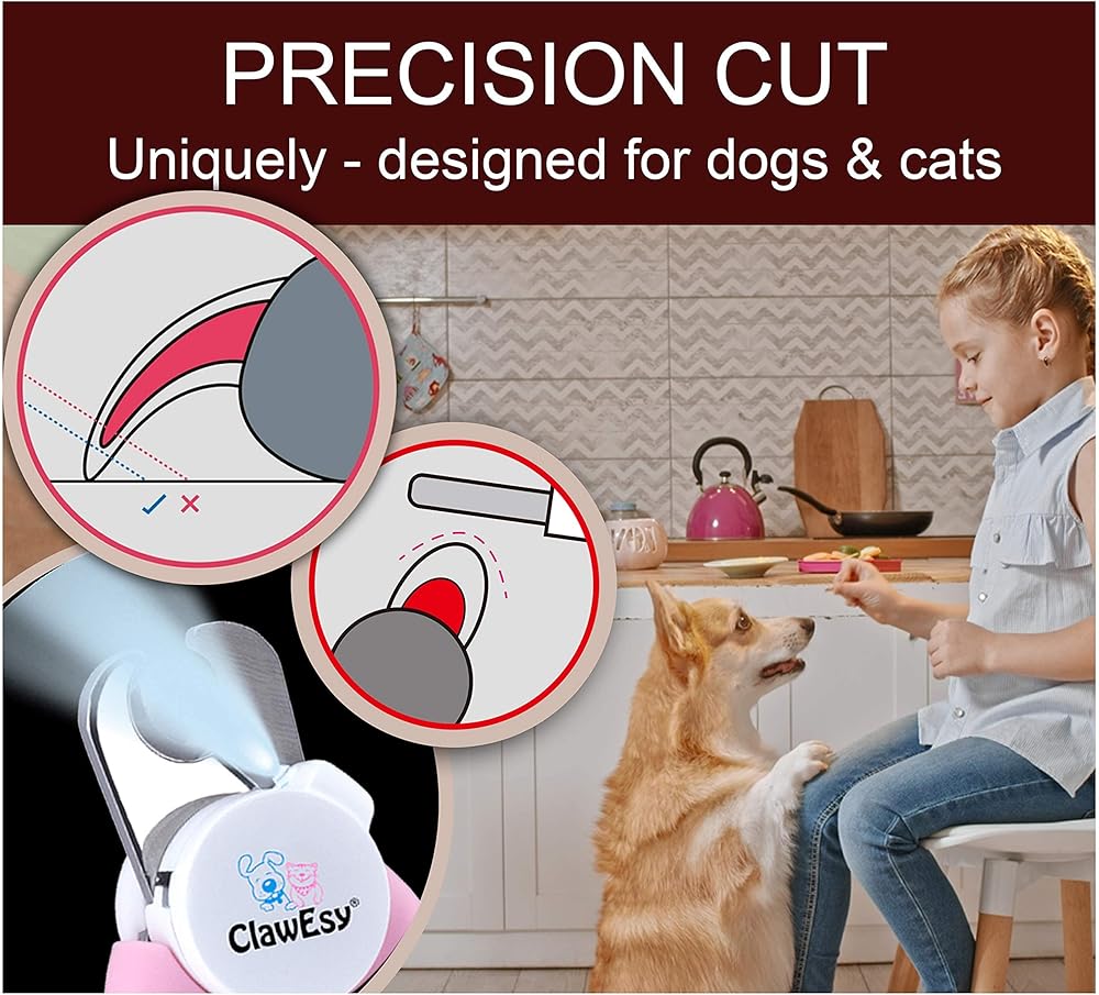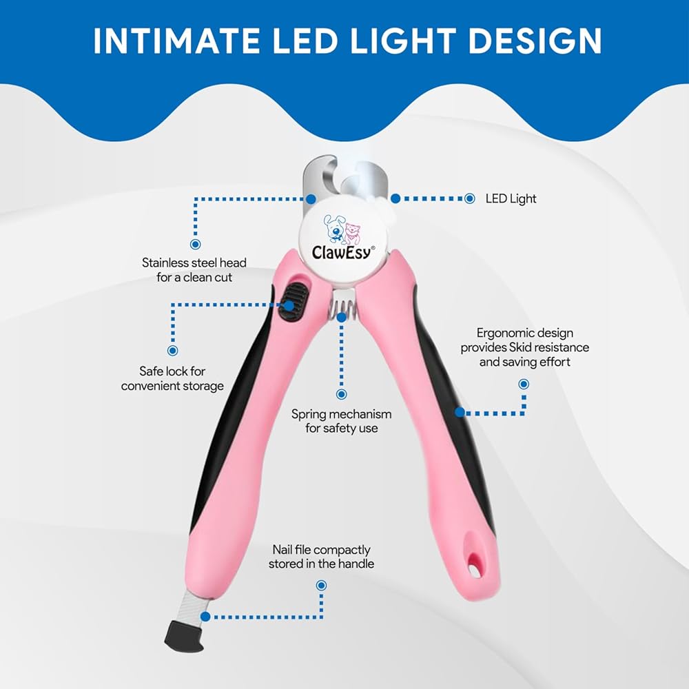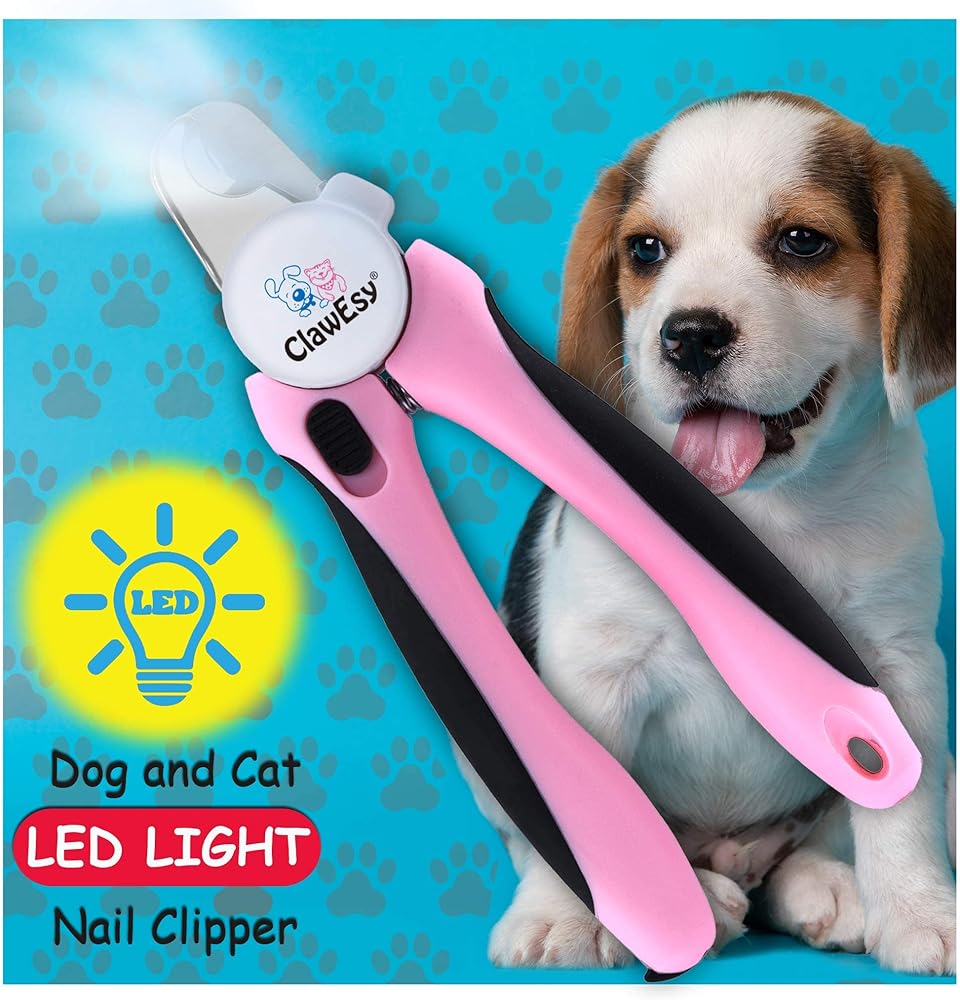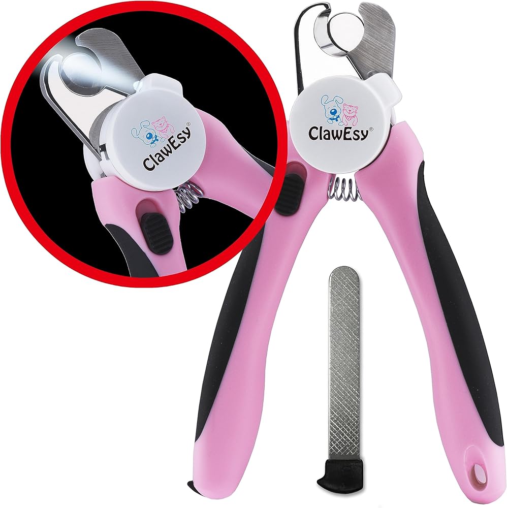 ماكينة قص أظافر الكلاب مع ضوء LED فائق السطوع لسلالة الدم، ماكينة تشذيب أظافر الحيوانات الأليفة من الفولاذ المقاوم للصدأ مع واقي أمان، مقبض مريح، مبرد أظافر مجاني من أجل حلاقة ناعمة وسهلة. الكلاب والقطط (وردي)