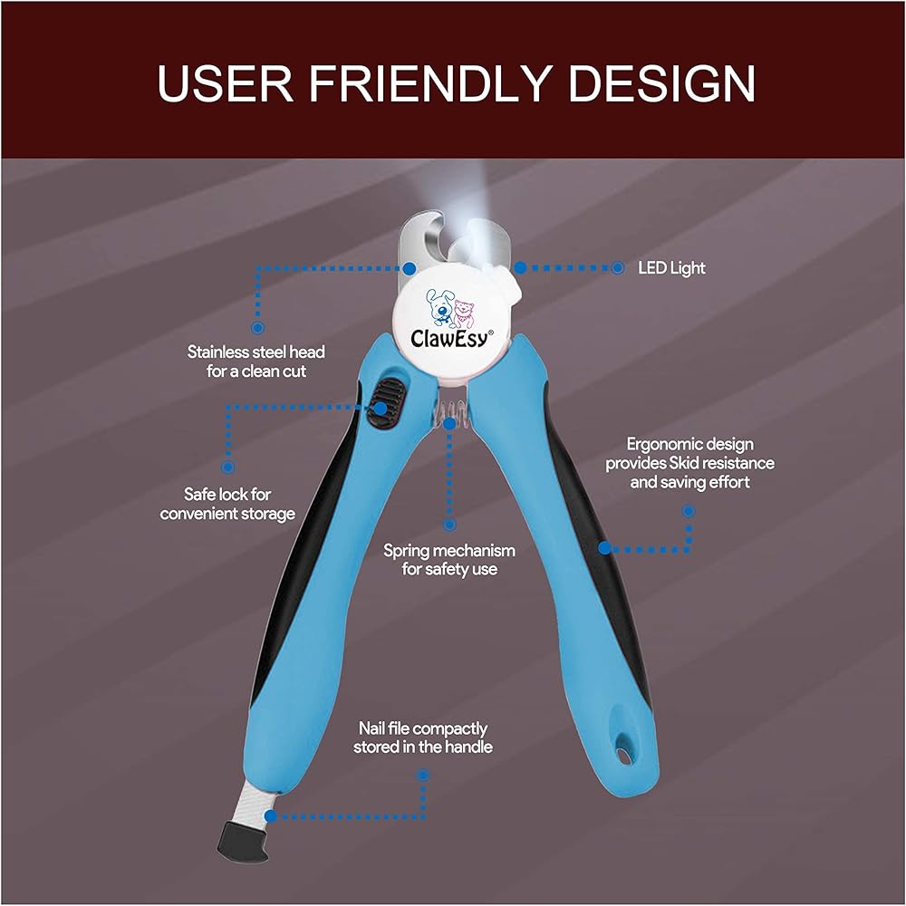 مقص أظافر للكلاب والقطط بدرجة احترافية مع ضوء LED: مقصات أظافر الكلاب والقطط هذه مصنوعة من الفولاذ المقاوم للصدأ عالي الجودة الذي يتميز بأنه حاد ومتين ومقاوم للصدأ. كما أنها تحتوي على ضوء LED يضيء أظافر كلبك أو قطتك بسرعة، مما يسمح لك بقص أظافرك بدقة وأمان. يساعدك ضوء LED على تجنب الجروح العرضية والنزيف ويضمن تجربة تنظيف غير مؤلمة وخالية من التوتر لكلبك أو قطتك.