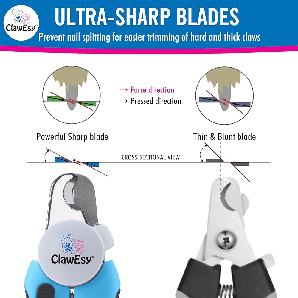 آلية حماية السلامة والقفل: تتميز مقصات أظافر الكلاب والقطط هذه بواقي أمان يمنع الإفراط في قطع وإصابة أظافر كلبك أو قطتك. يمكنك أيضًا ضبط الواقي ليناسب أحجام وأشكال الأظافر المختلفة. تحافظ آلية القفل على الشفرات مغلقة عند عدم الاستخدام، مما يجعلها آمنة وسهلة التخزين.