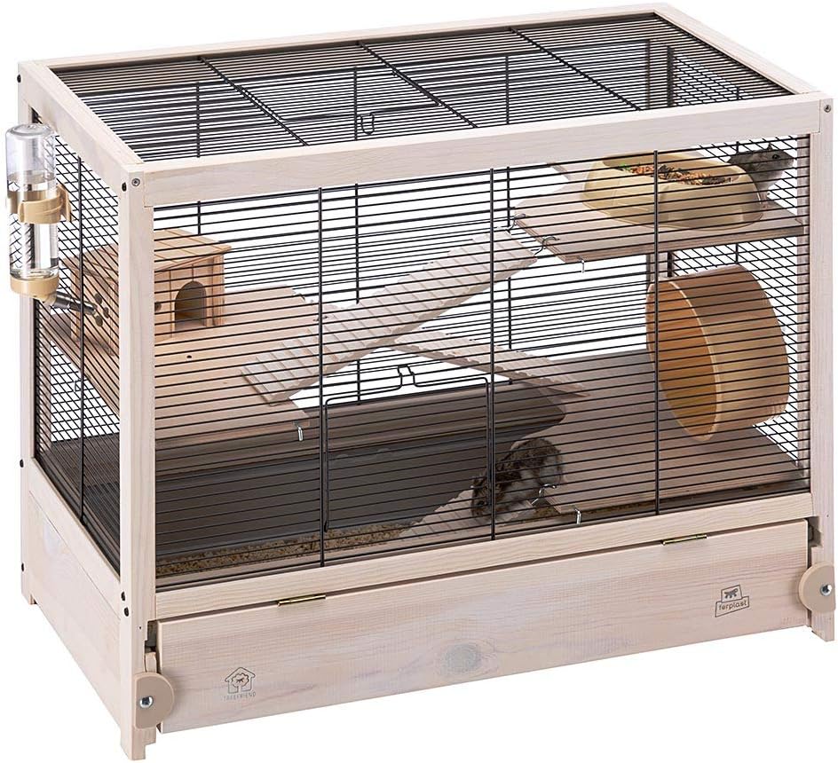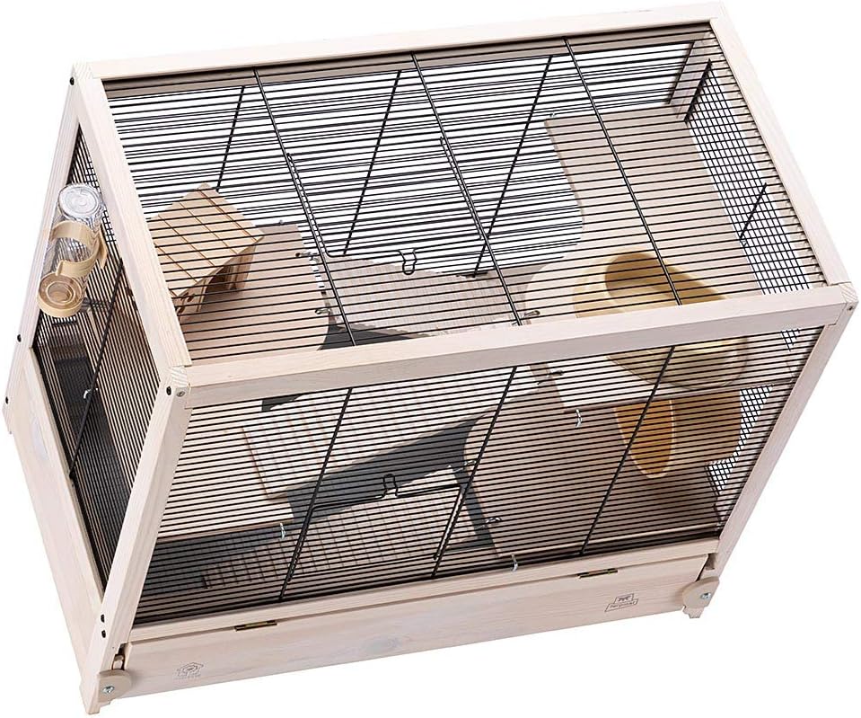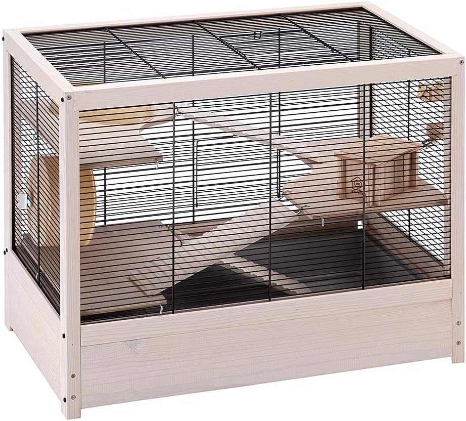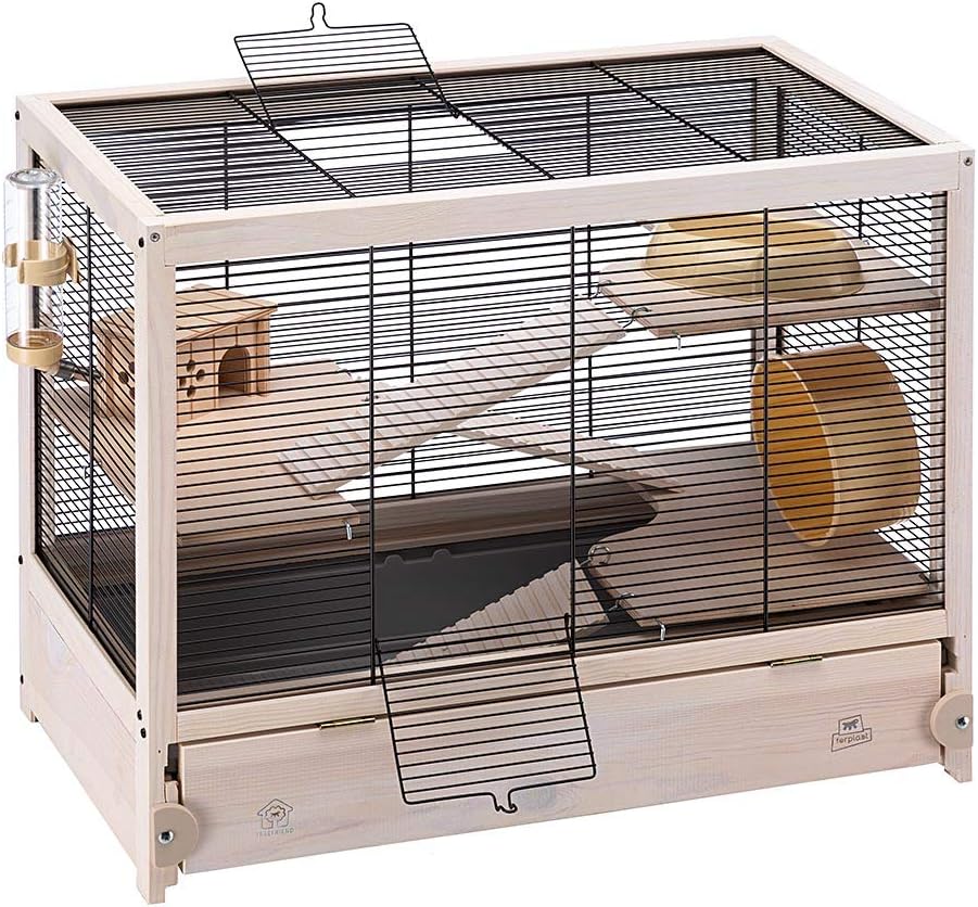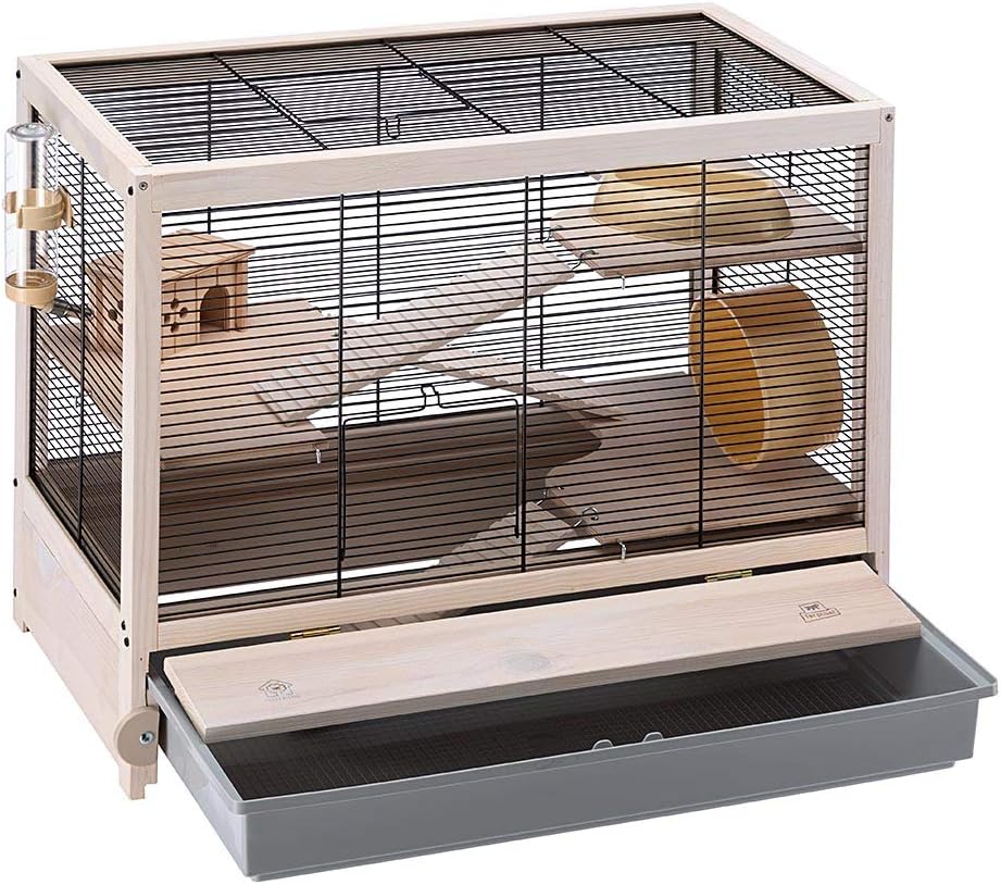 قفص هامستر من الخشب الطبيعي الجميل | قفص الهامستر الفريد مصنوع من خشب طبيعي ومستدام ومقاوم للسوائل وهيكل شبكي سلكي قوي