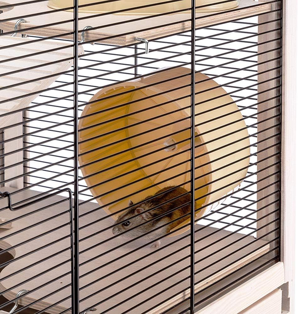 قفص هامستر خشبي سهل الصيانة | قاعدة بلاستيكية بعمق 2.6 انش تحتوي على فراش ويمكن إزالتها لتفريغ الفضلات / إلخ. للتنظيف الروتيني، يمكن تنظيف الملحقات البلاستيكية الأخرى والجزء العلوي السلكي بمنظف خفيف وآمن على الهامستر، قاعدة بلاستيكية قابلة للإزالة مقاس 22.75 طول × 12.25 عرض × 2.6 ارتفاع انش