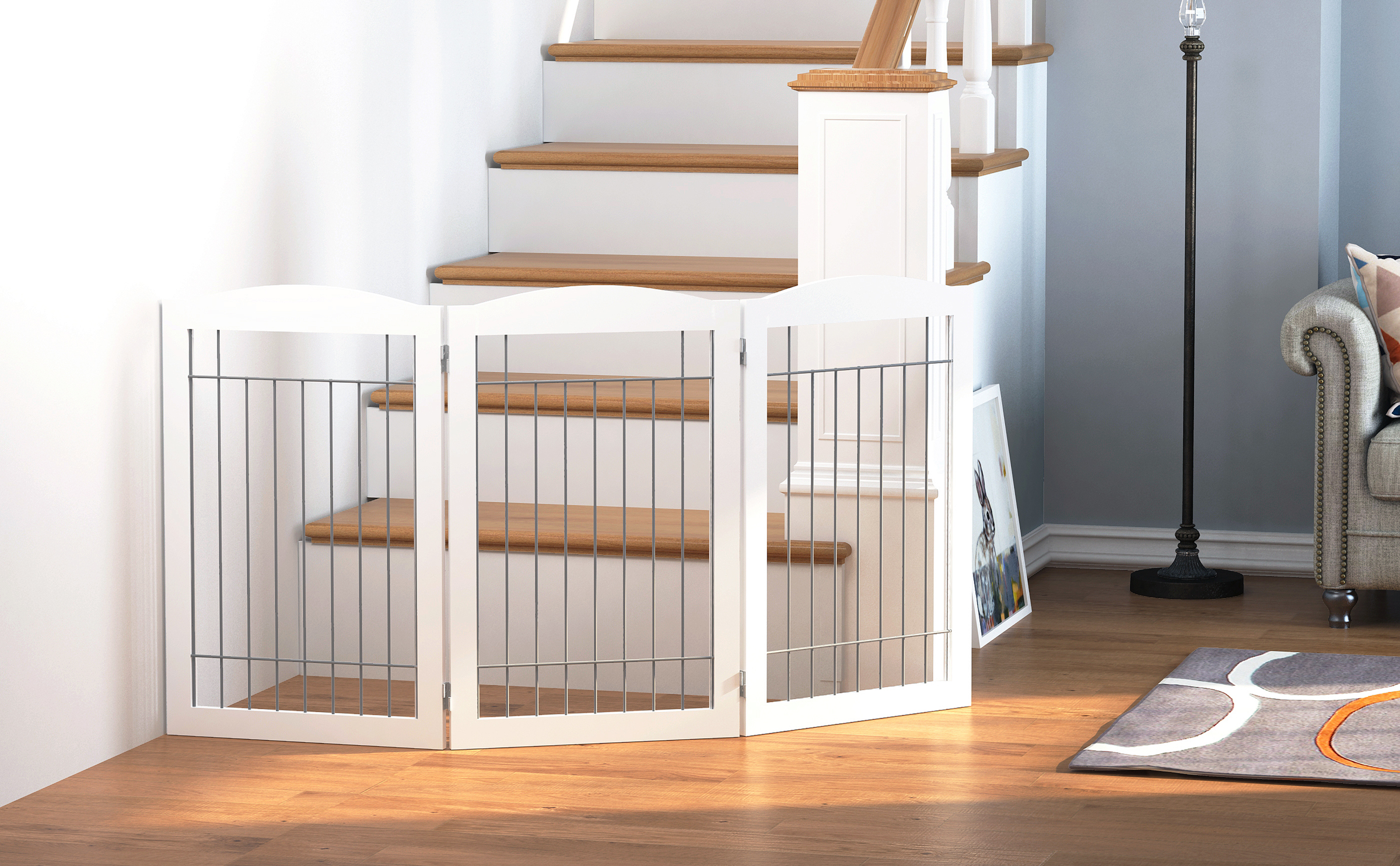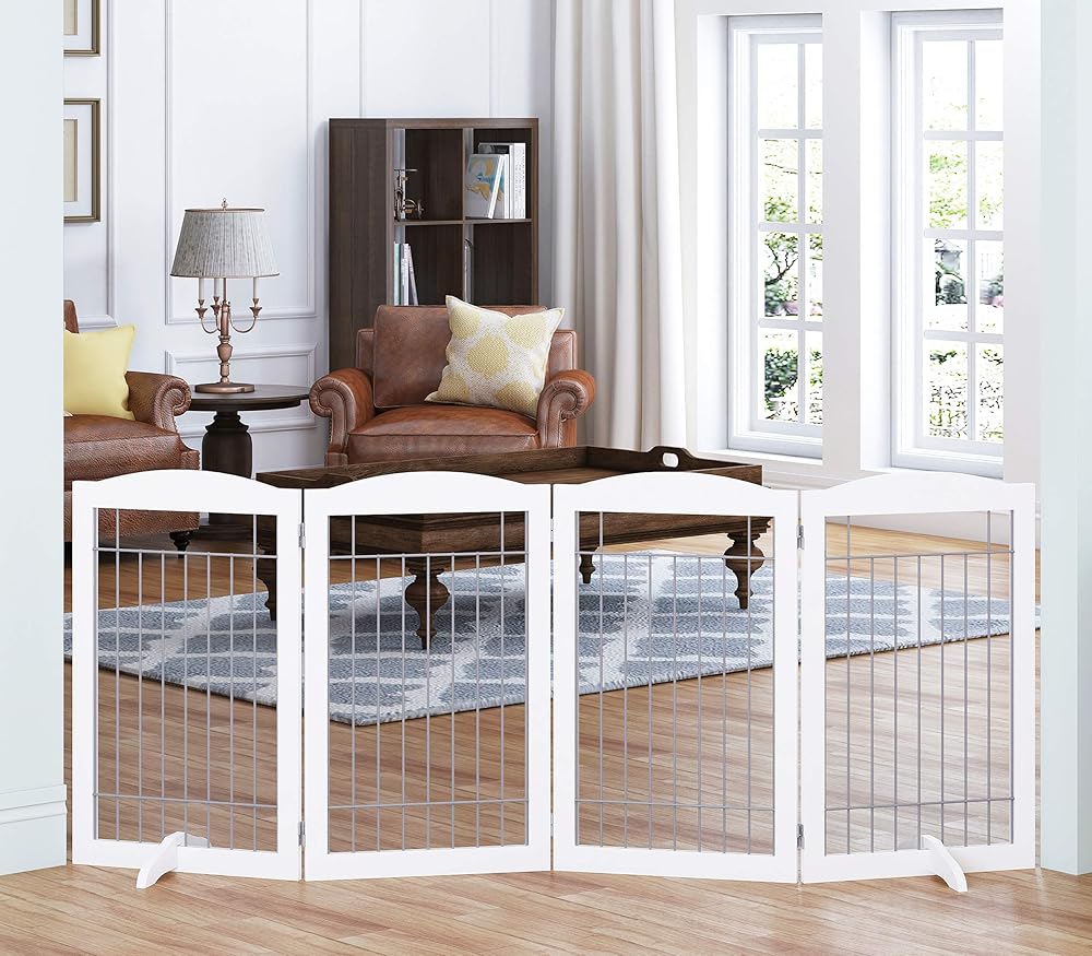 تصميم قابل للطي والتوسيع: بوابة الكلاب هذه قائمة بذاتها ويمكن طيها على شكل حرف Z الواسع مما يسمح لك باستخدامها في الممرات الكاملة أو الأبواب المزدوجة أو المداخل القياسية أو غرف النوم.