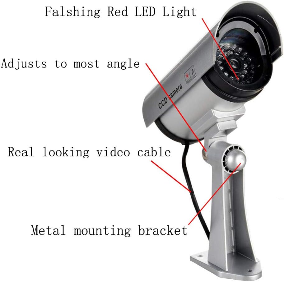 3. تحتوي على ضوء LED أحمر وامض يومض في فترات زمنية لمدة ثانيتين مما يجعلها تبدو وكأنها تعمل ككاميرا مراقبة حقيقية.