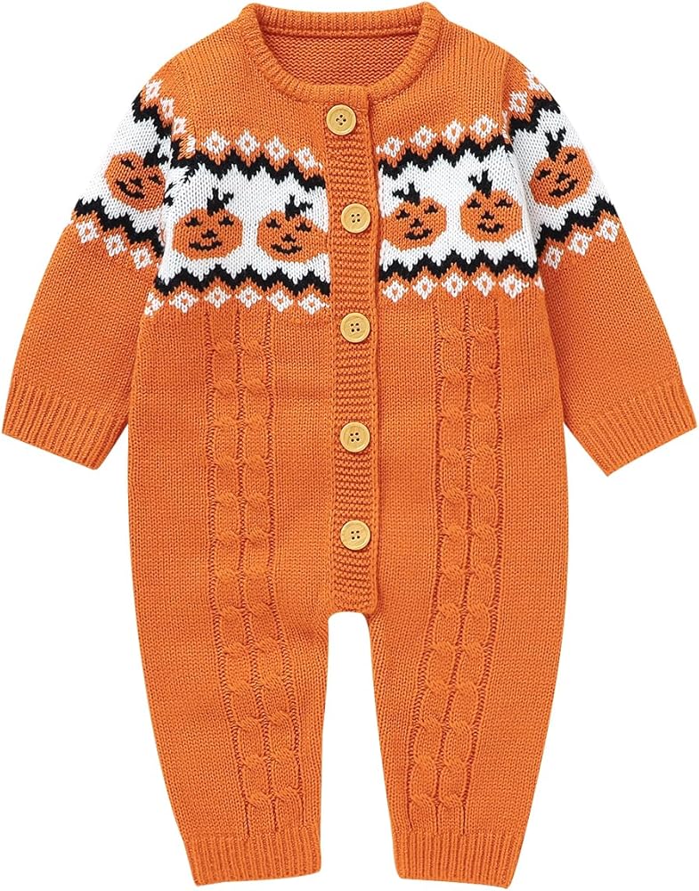 Smiley pumpkin print, adjustable button straps, sleeveless, knit romper, newborn romper, your little one will receive lots of compliments wearing it. Button bottom for easy on and off.