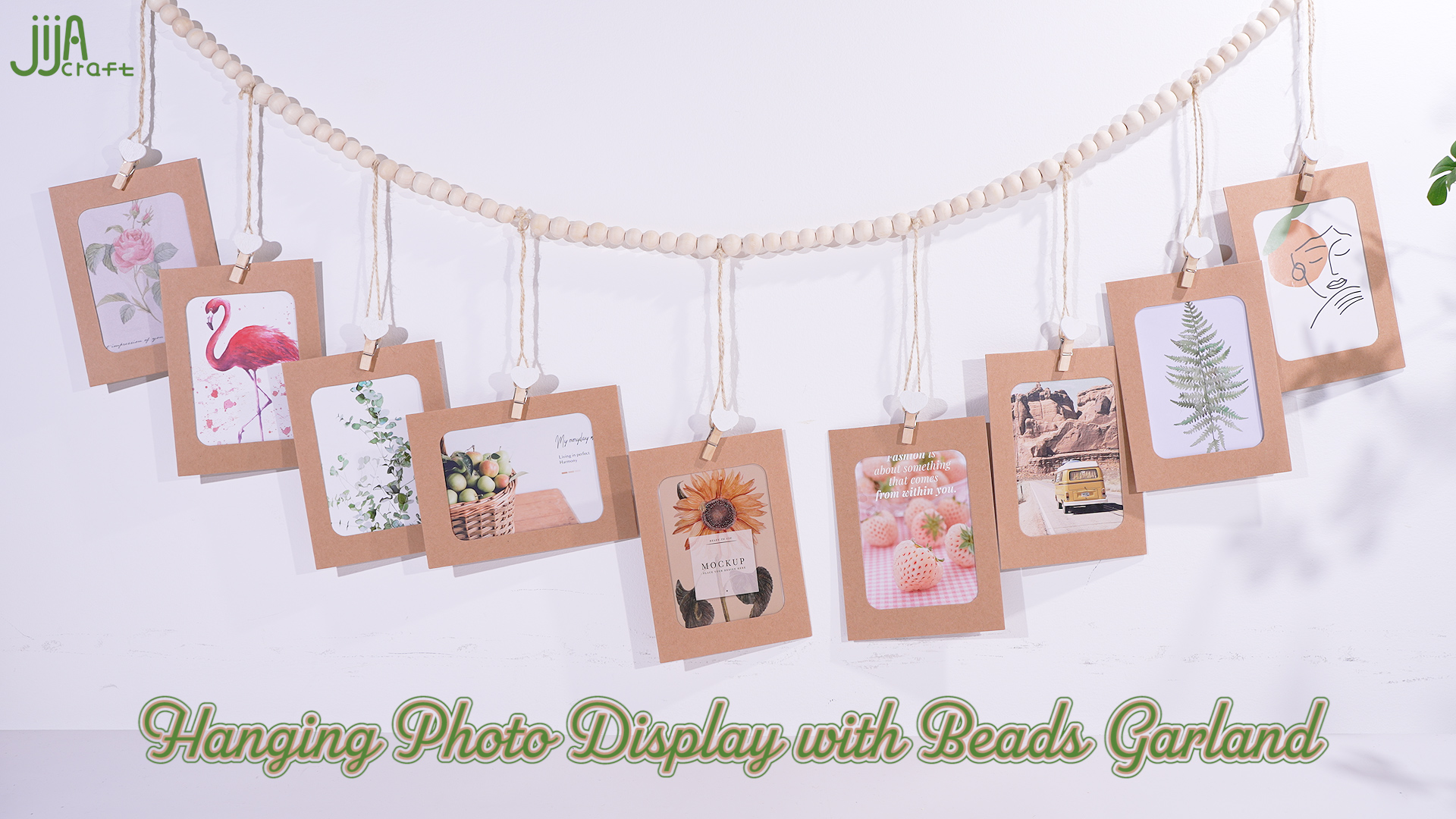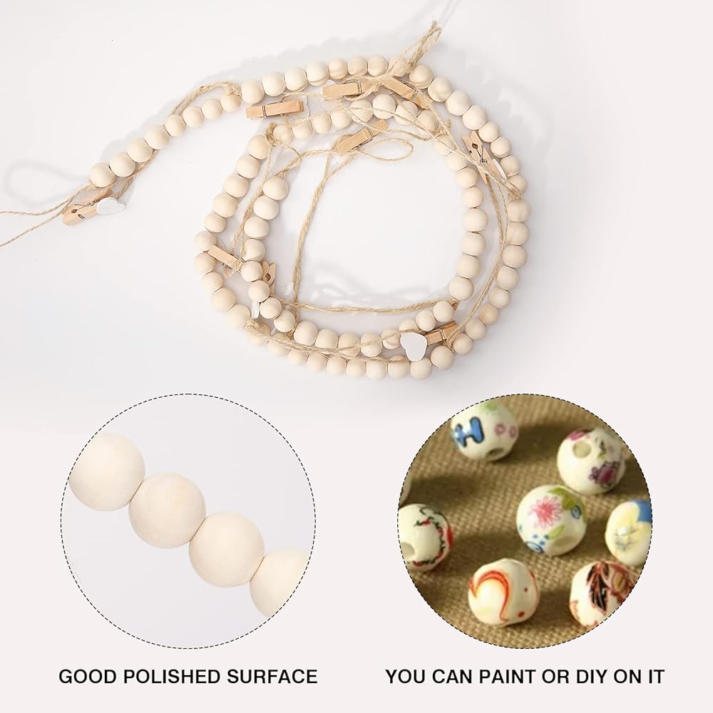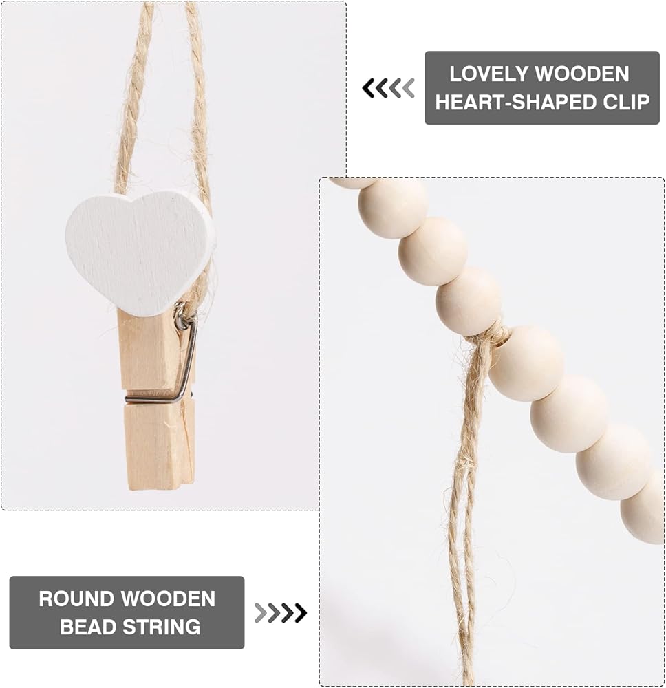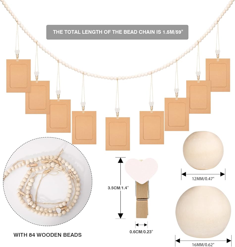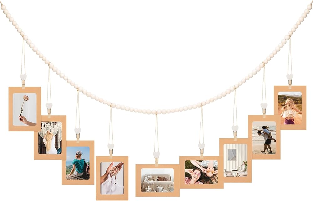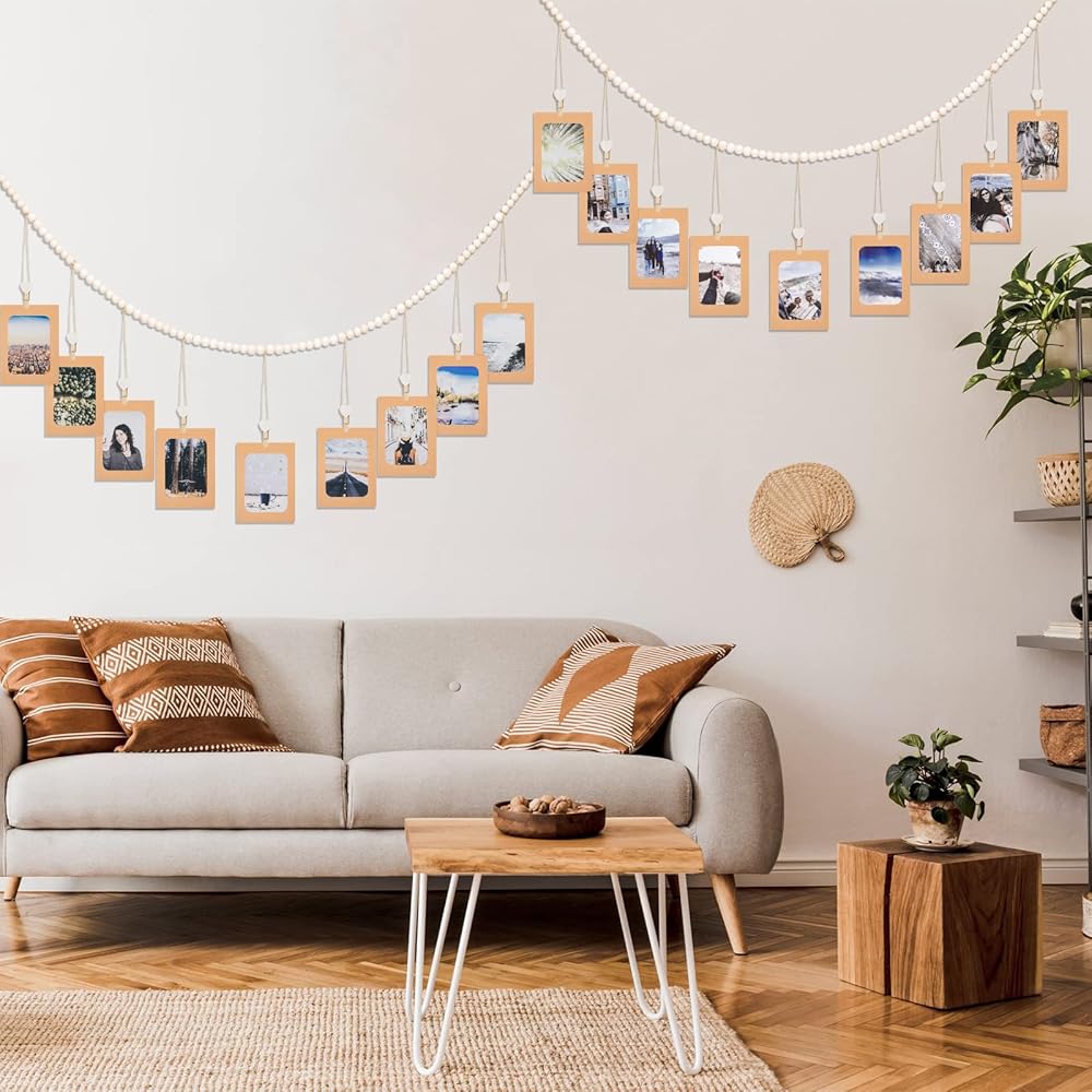 عرض صور معلق بطول 5 أقدام من jijAcraft مع مشابك الغسيل، إكليل من الخرز الخشبي مع مشبك صور وإطارات صور ورقية، حامل مشبك صور أنيق لتزيين جدار بوهو، غرفة النوم، المنزل، مسكن الحضانة