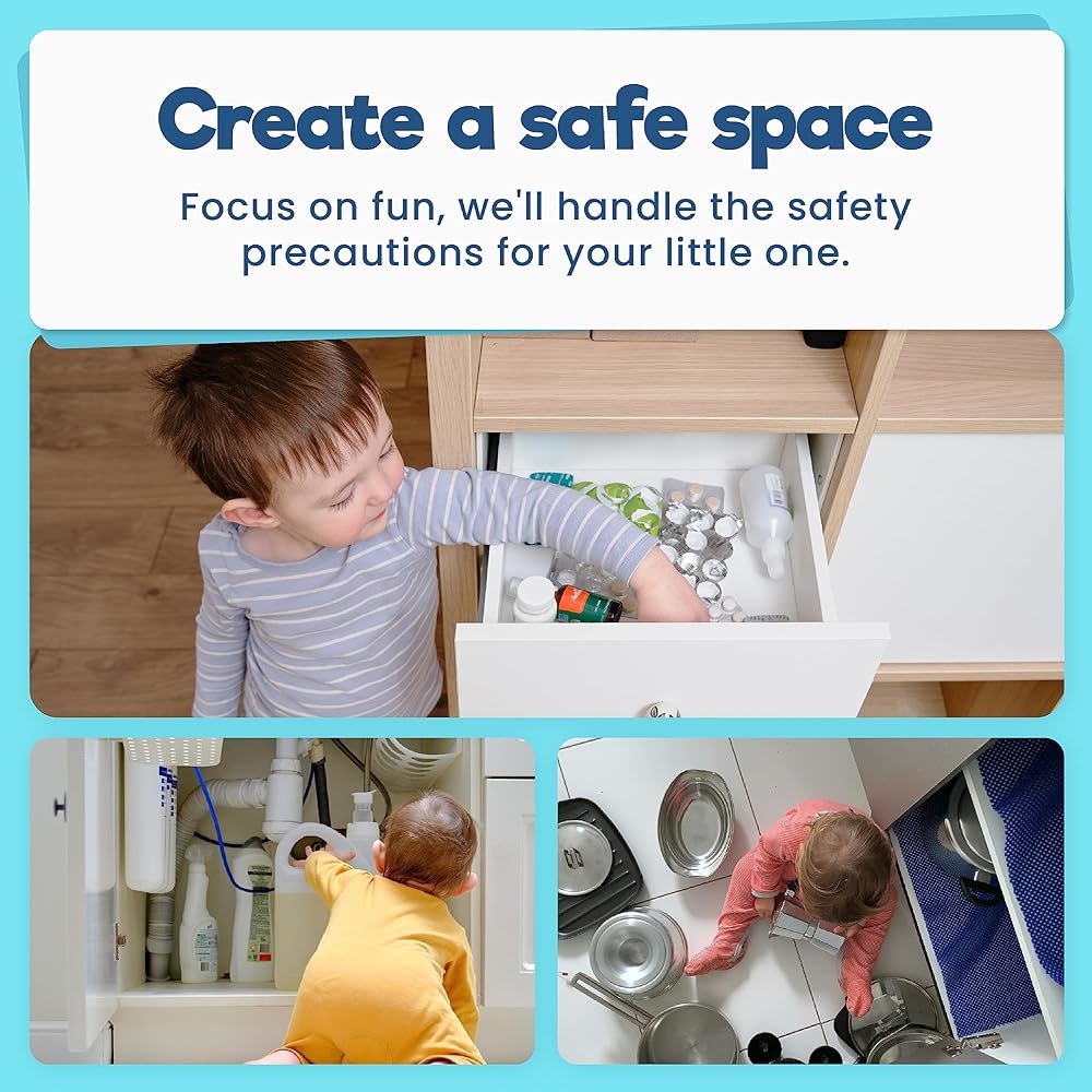 • EASY AND DAMAGE-FREE INSTALLATION - No tools required! These are installed using strong 3M adhesives. You won't need to drill holes and screws into your cabinets, drawers and cupboards, and the adhesives can be removed without leaving marks. This is especially useful for renters. Your furniture won't have to be damaged to protect your curious children.