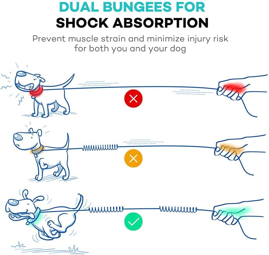 متين وشامل - زمام عالي الجودة وشديد التحمل مصمم ليتحمل الاستخدام المتكرر عامًا بعد عام ويمكن أن يتمدد حتى 67 انش ليناسب جميع الكلاب بغض النظر عن المقاس.