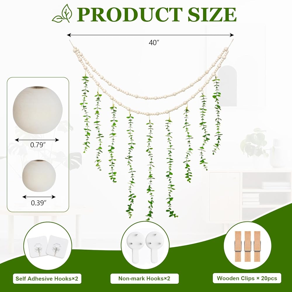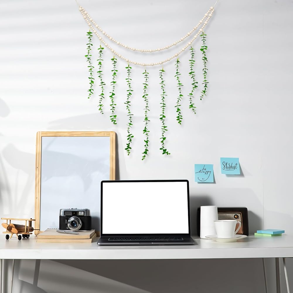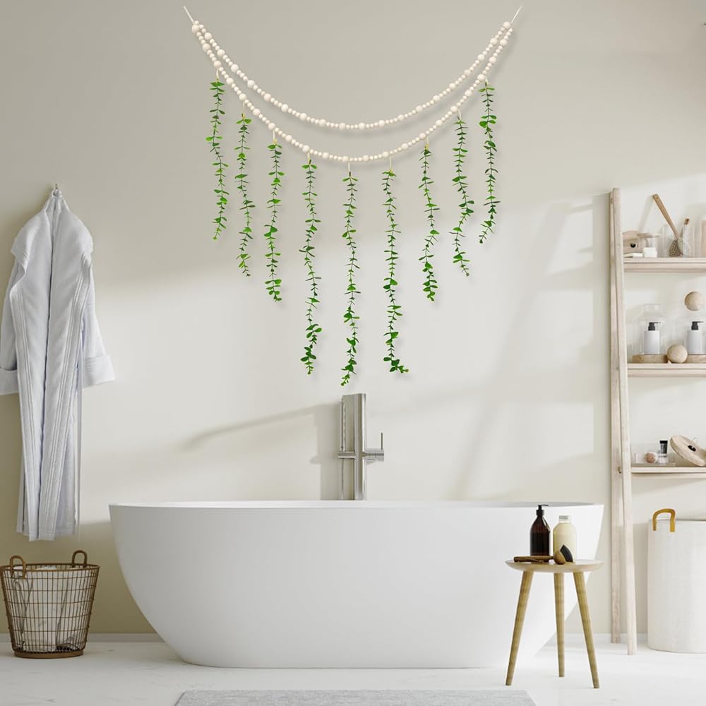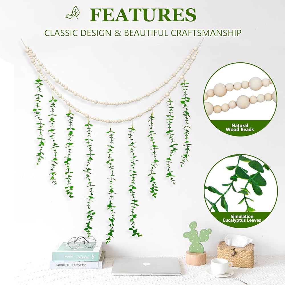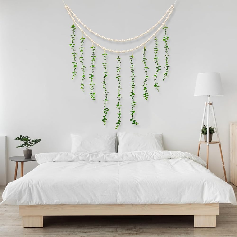 🍃PREMIUM MATERIAL & HANDMADE WITH LOVE: Every artificial eucalyptus decoration is handmade of durable solid wood, high-quality plastic eucalyptus stems and various accessories, and has been screened for quality. With the exquisite craftsmanship, the Boho wall decoration will definitely complement your home decor. These plants are not restricted by the season and are perfect for people who don't have time to maintain real plants.