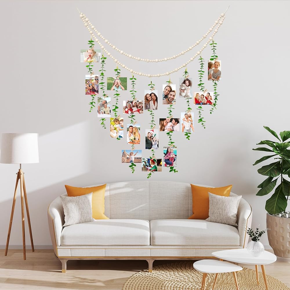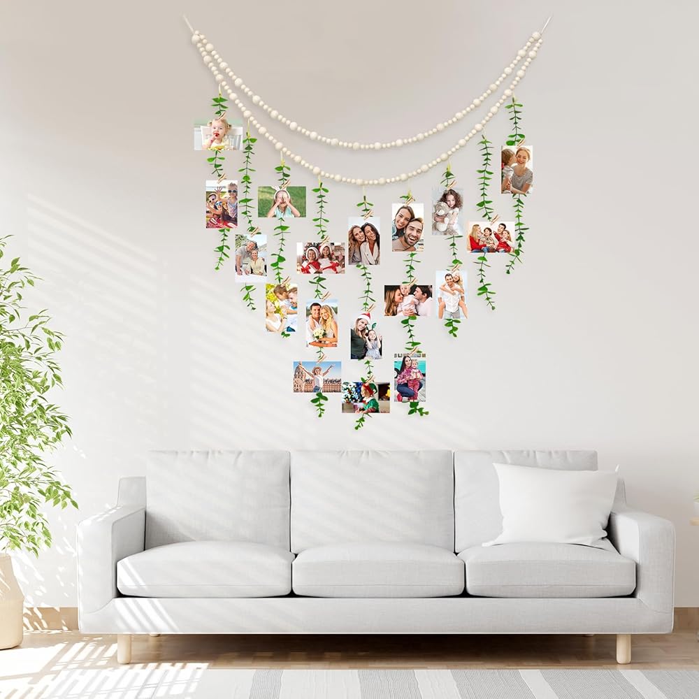 🍃EXQUISITE DESIGN & NATURAL FRESH: Our eucalyptus wall hanging photo display decor can be used with photos, landscapes, cards, postcards, family photos, or decorate your wall alone. The eucalyptus vines wall decor blends nature and art perfectly. It will add a touch of natural and freshness to your space, perfect for relaxing after a busy day.