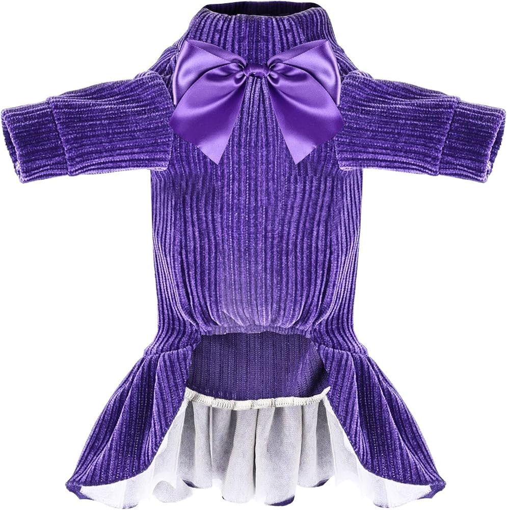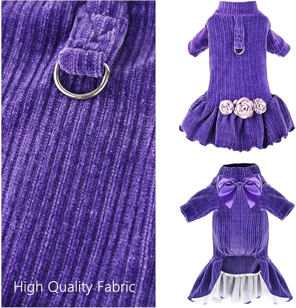• مادة مسامية: النصف العلوي مصنوع من مخمل مسامي للغاية مما يجعل فستان الجرو أخف وزنًا وأكثر نعومة ولا يسبب أي ضرر لجلد حيوانك الأليف. التنورة مغطاة بقوس لطيف سيجذب الكثير من الاهتمام.