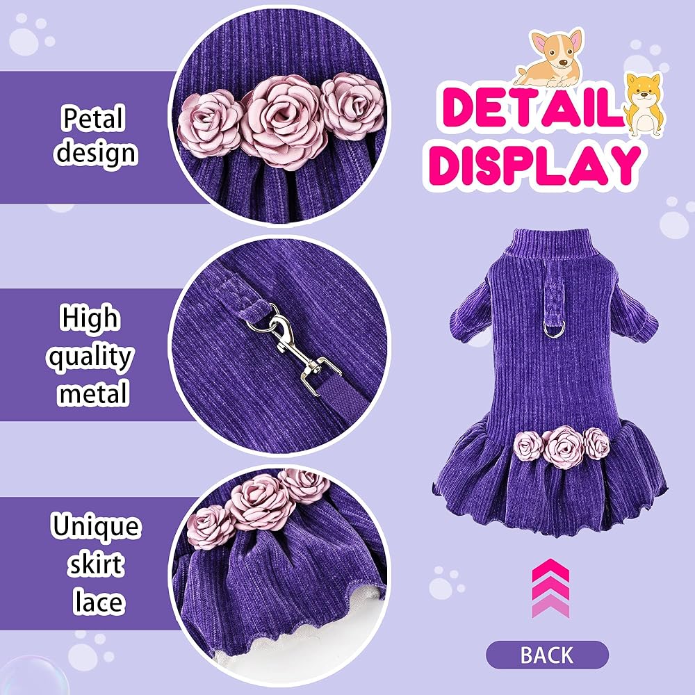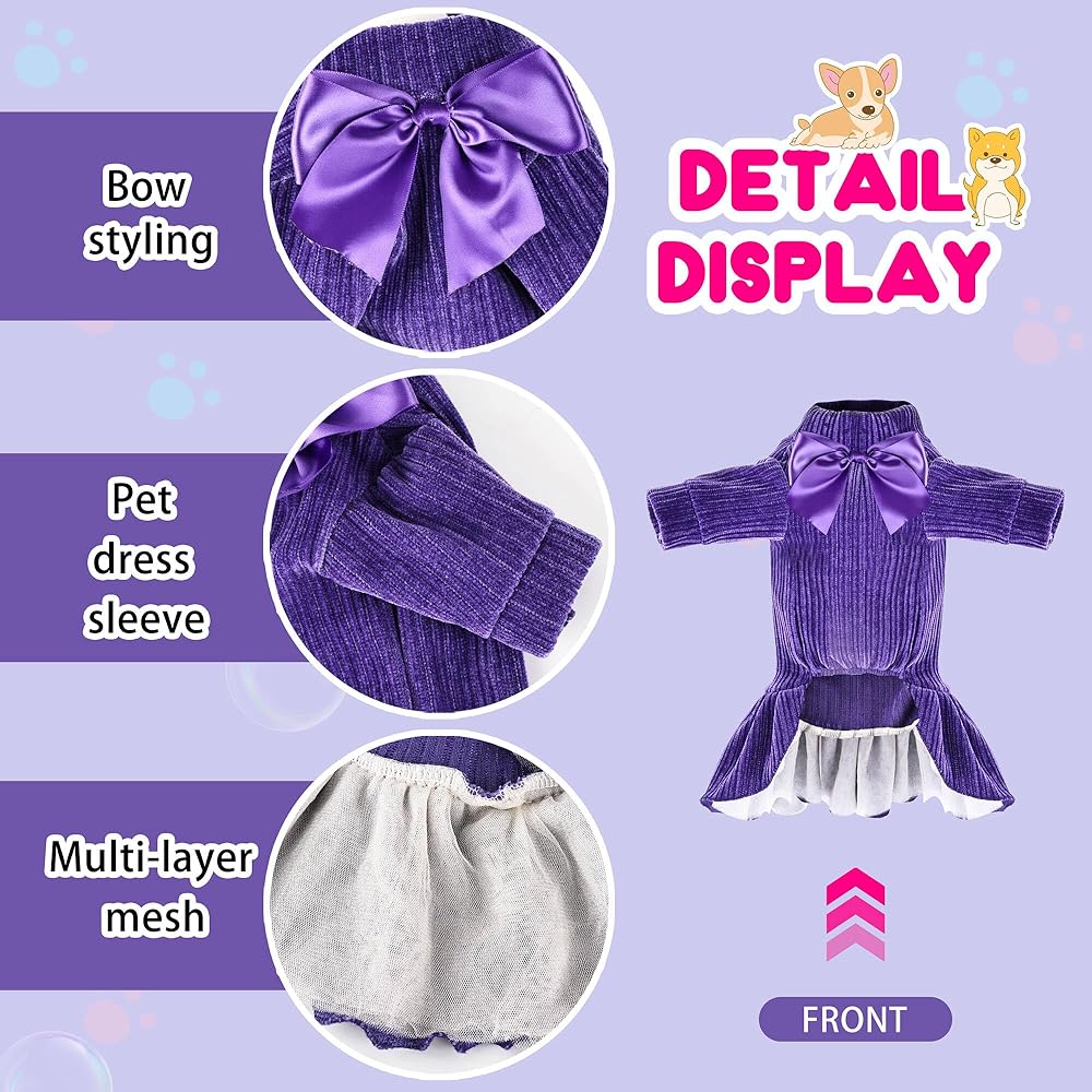حزام فستان بعقدة على شكل فيونكة للكلاب مع مقود وتنورة أميرة للكلاب وملابس للحيوانات الأليفة للكلاب الصغيرة والبنات والقطط وحفلات الزفاف وأعياد الميلاد (أرجواني، XS)