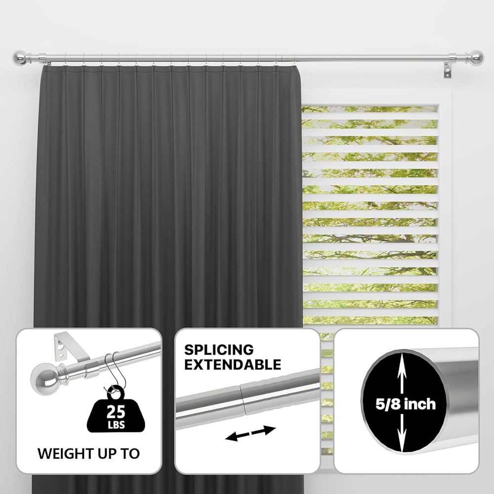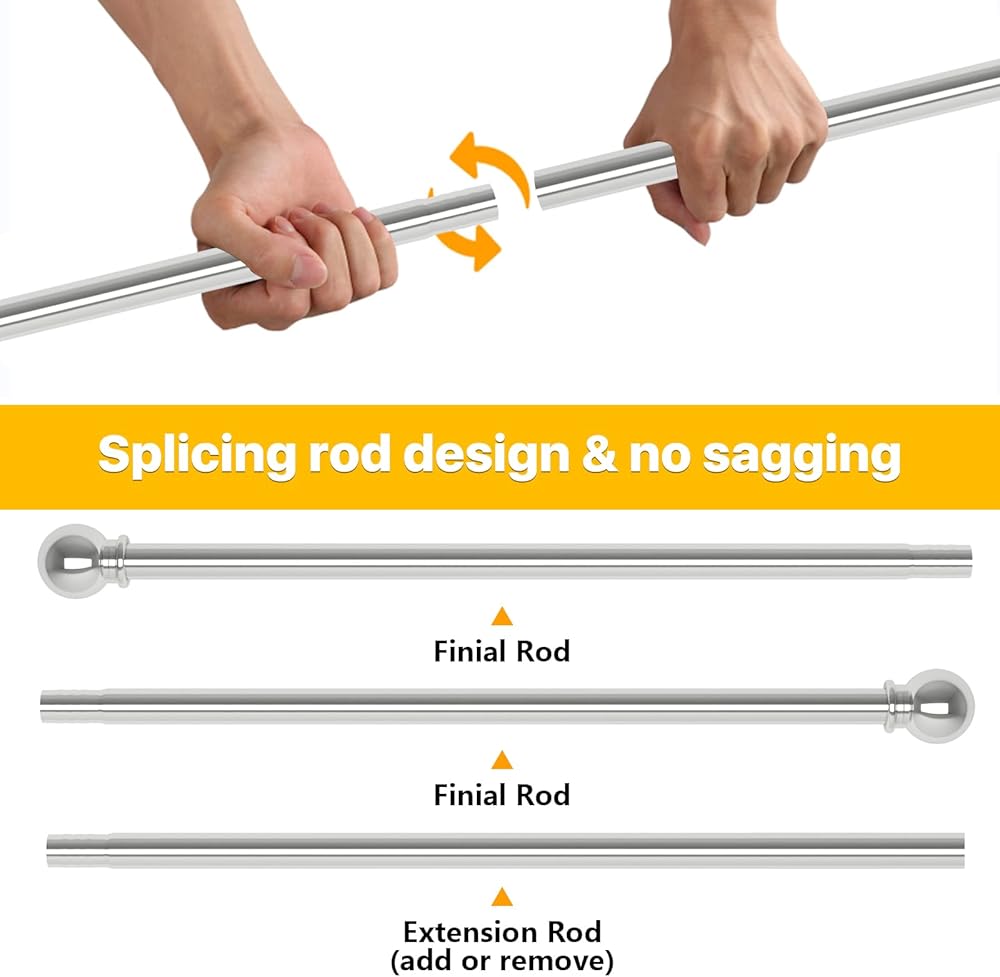 قضيب فولاذي شديد التحمل - مصنوع من أعمدة معدنية بلمسة نهائية ذهبية مصقولة، مما يتيح لقضيب الستارة الخاص بنا حمل أي شيء بدءًا من الستائر الشفافة إلى الستائر الأثقل (حتى 15 رطلاً) بأسلوب قوي.