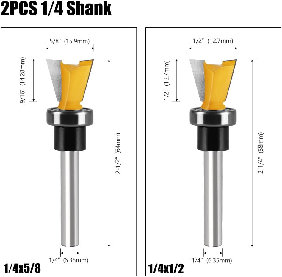 WSOOX 1/4 عرقوب مجموعة لقم التوجيه مع محمل 1/2 بوصة 5/8 بوصة قطع ضياء تتوافق لقم توجيه مشتركة لصنع صناديق خزائن النجارة.
